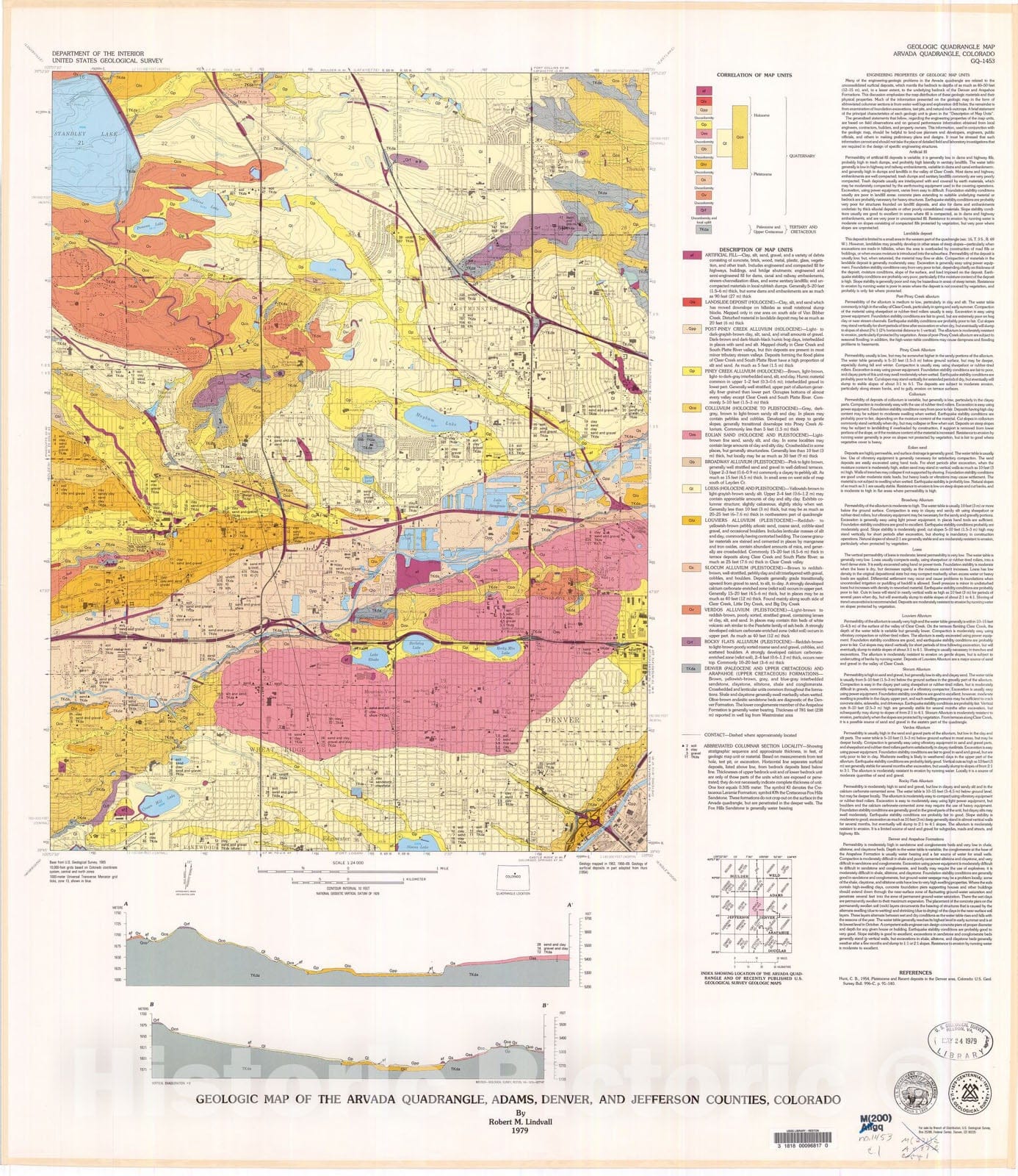 Map : Geologic map of the Arvada quadrangle, Adams, Denver, and Jefferson Counties, Colorado, 1979 Cartography Wall Art :