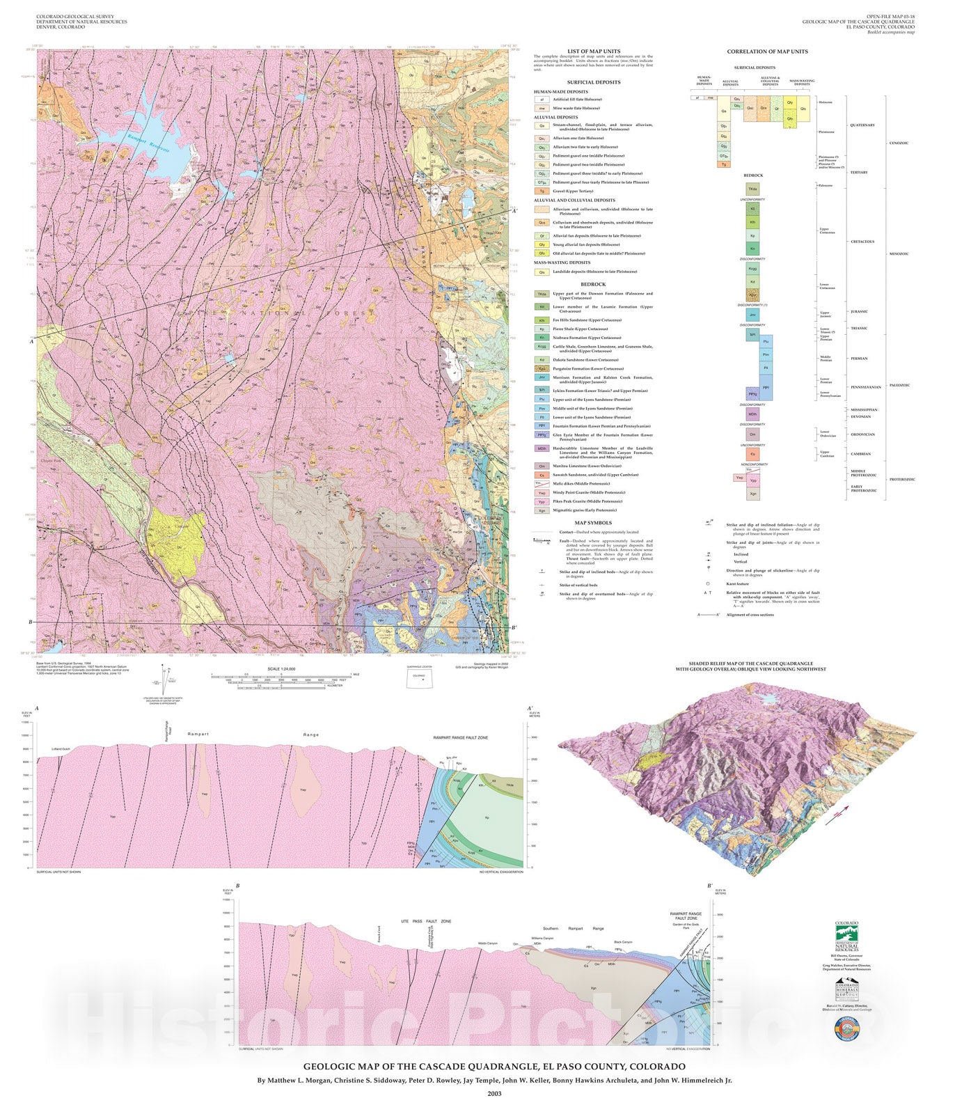 Map : Geologic Map of the Cascade Quadrangle, El Paso County, Colorado, 2004 Cartography Wall Art :