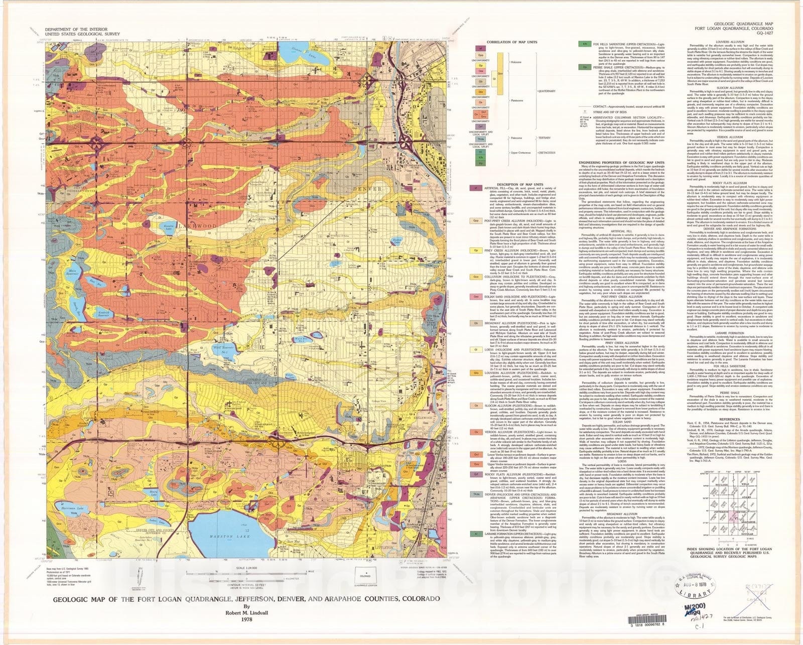 Map : Geologic map of the Fort Logan quadrangle, Jefferson, Denver, and Arapahoe Counties, Colorado, 1978 Cartography Wall Art :