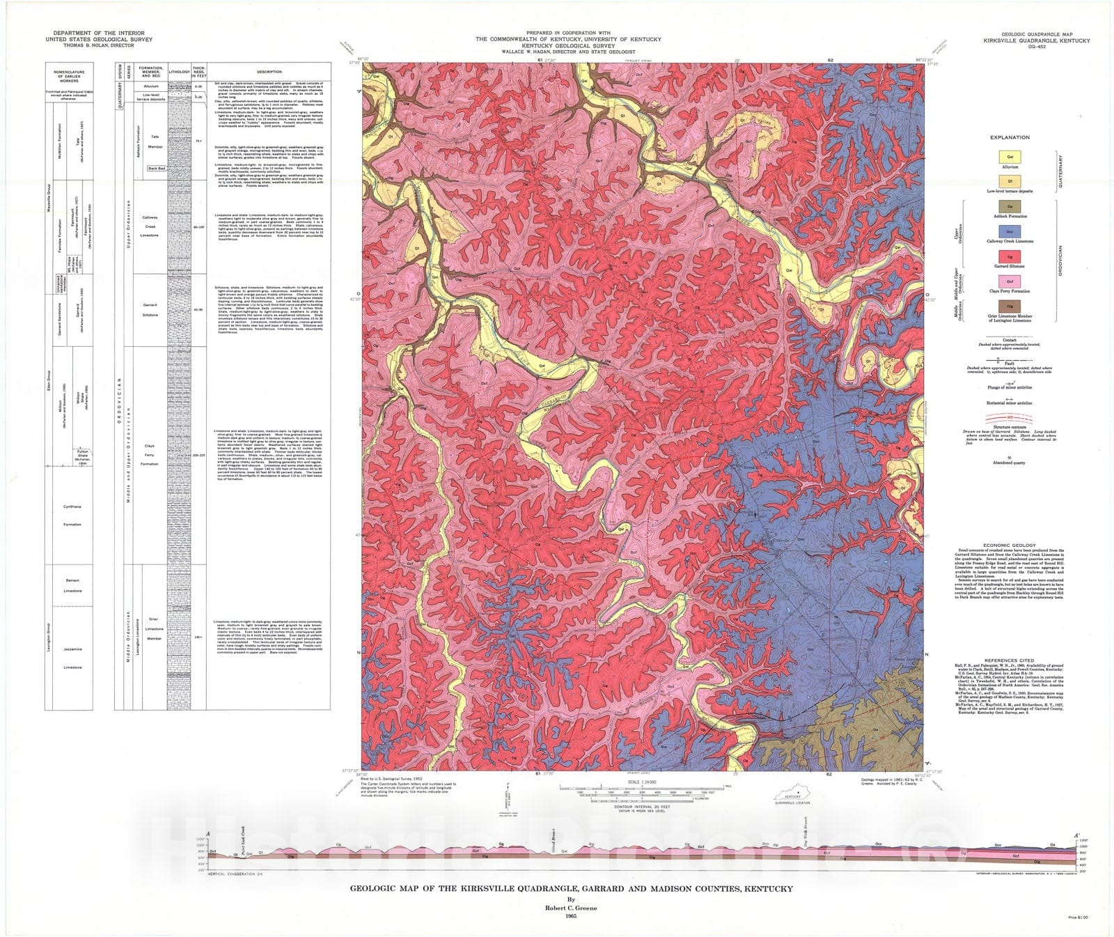Map : Geologic map of the Kirksville quadrangle, Garrard and Madison Counties, Kentucky, 1965 Cartography Wall Art :