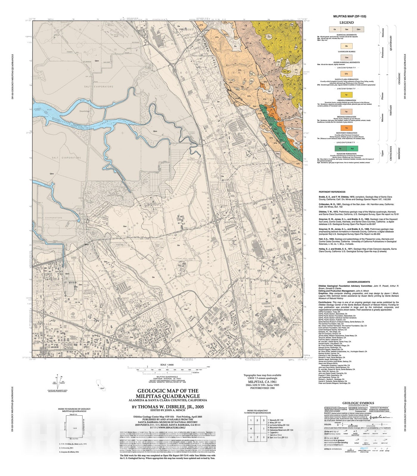 Map : Geologic map of the Milpitas quadrangle, Alameda & Santa Clara Counties, California, 2005 Cartography Wall Art :
