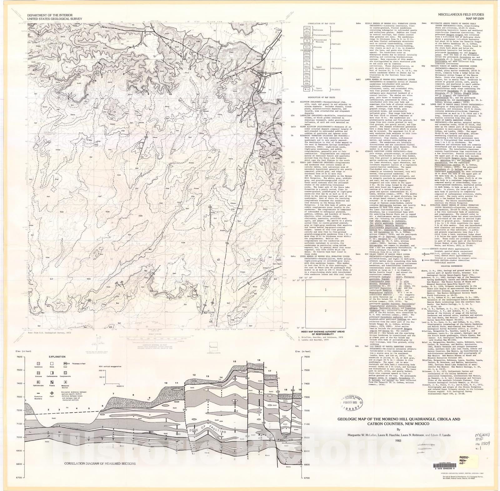 Map : Geologic map of the Moreno Hill quadrangle, Cibola and Catron Counties, New Mexico, 1983 Cartography Wall Art :