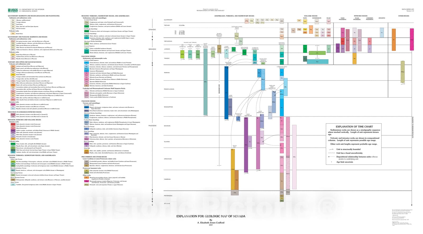 Map : Geologic map of Nevada, with a section on a digital conodont database of Nevada, 2007 Cartography Wall Art :