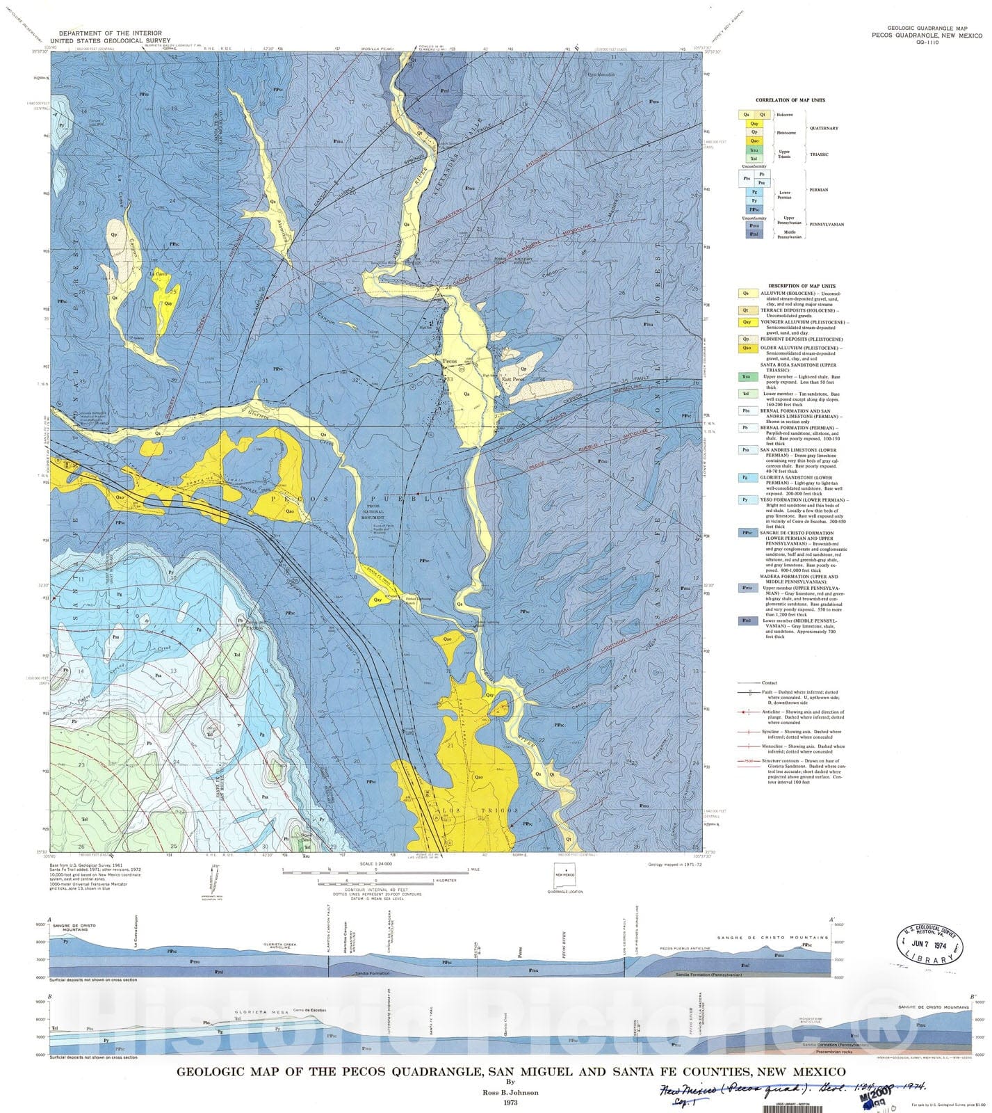 Map : Geologic map of the Pecos quadrangle, San Miguel and Santa Fe Counties, New Mexico, 1973 Cartography Wall Art :