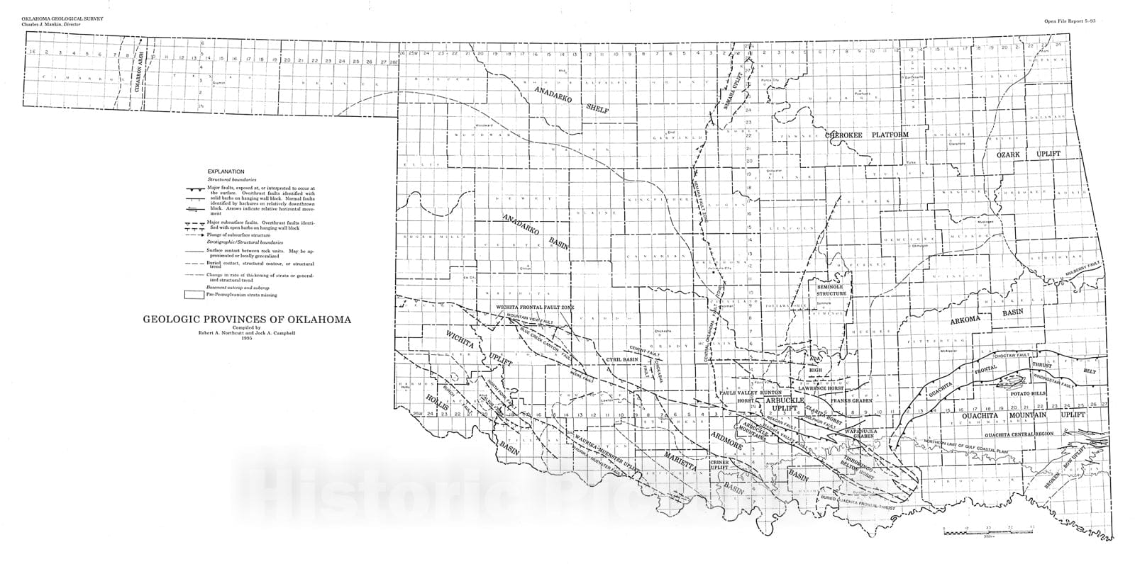Map : Geologic provinces of Oklahoma, 1995 Cartography Wall Art :