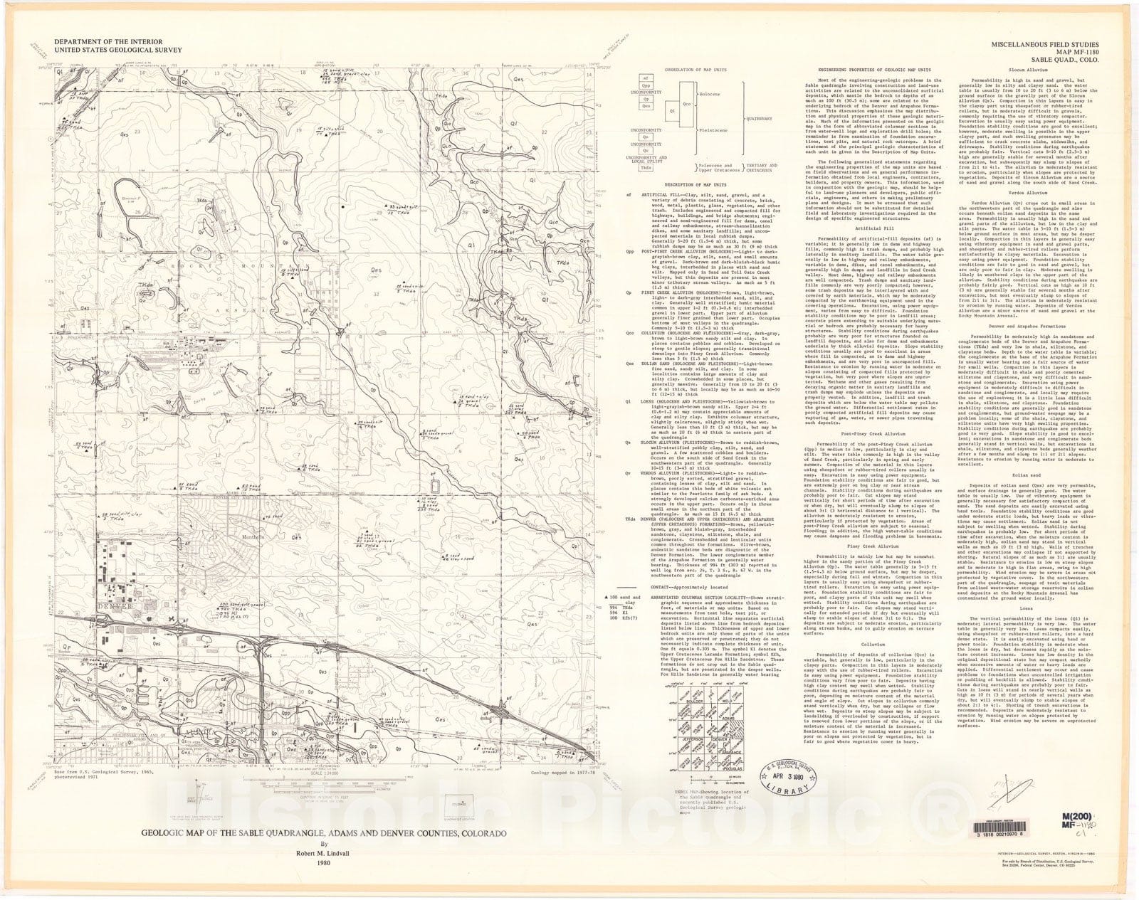 Map : Geologic map of the Sable quadrangle, Adams and Denver Counties, Colorado, 1980 Cartography Wall Art :