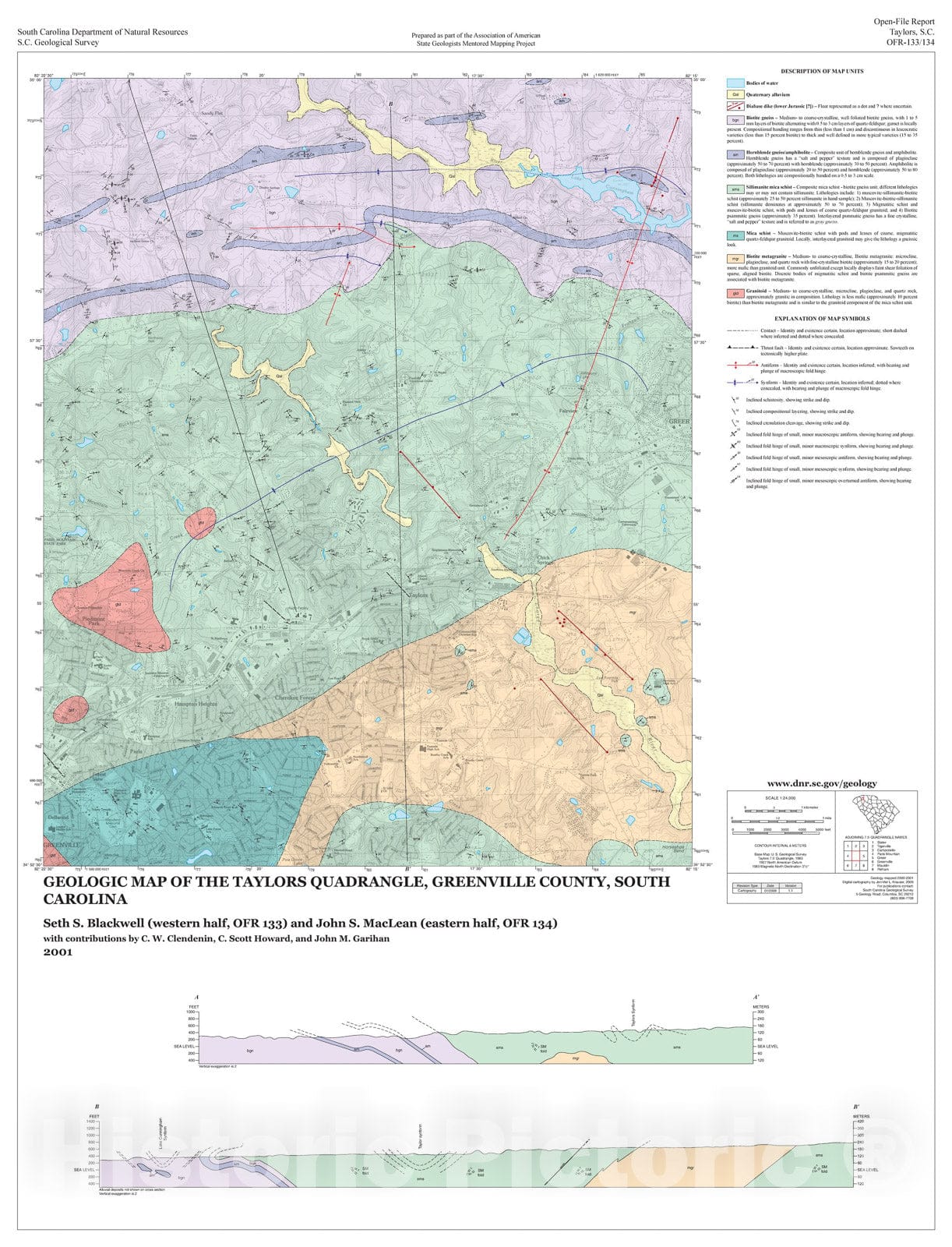 Map : Geologic map of Taylors quadrangle, Greenville County, South Carolina, 2001 Cartography Wall Art :