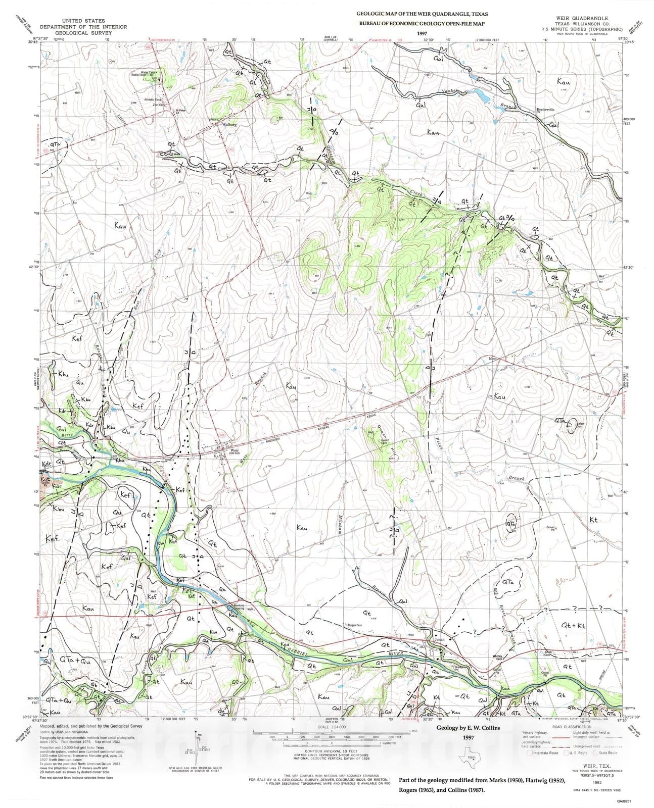 Map : Geologic map of the Weir quadrangle, Texas, 1997 Cartography Wall Art :