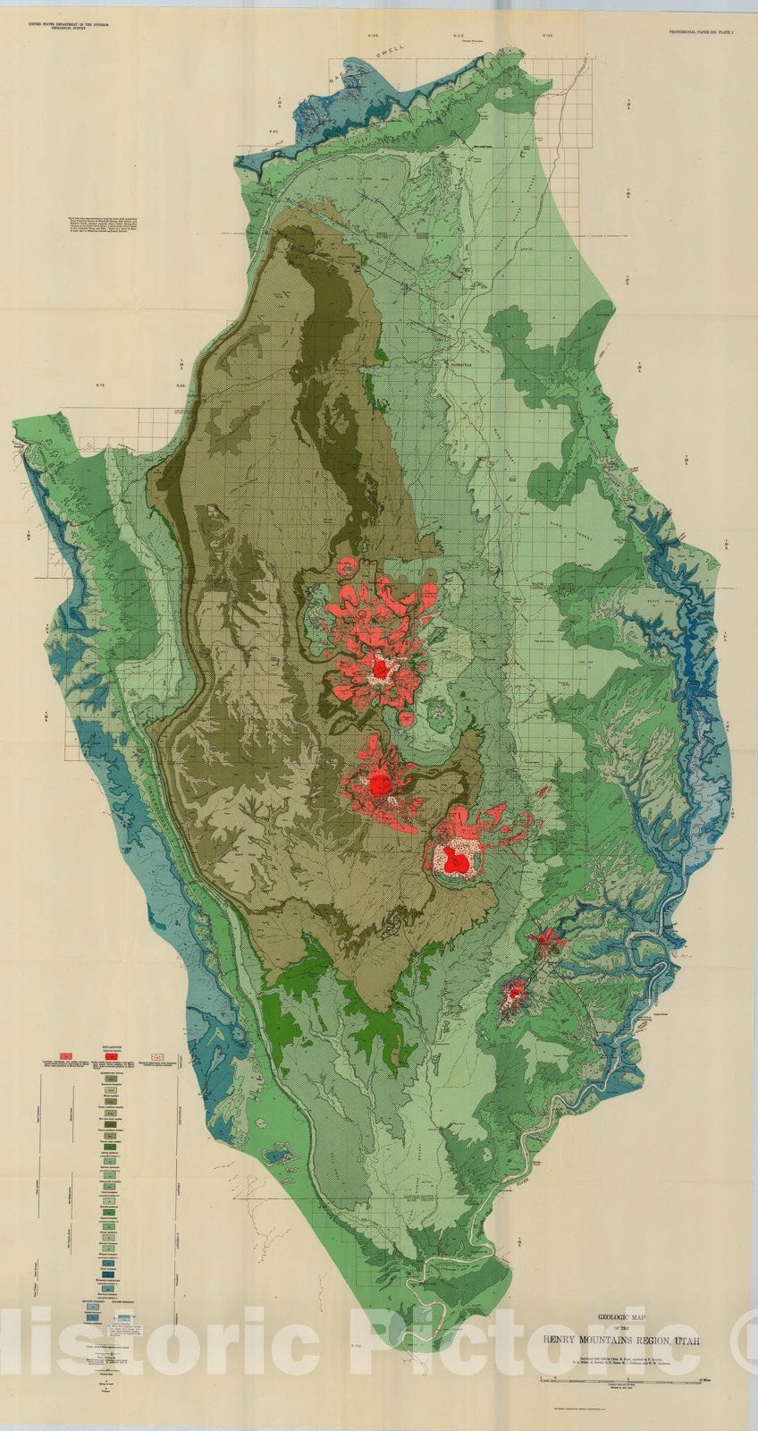Map : Geology and geography of the Henry Mountains region, Utah, 1953 Cartography Wall Art :