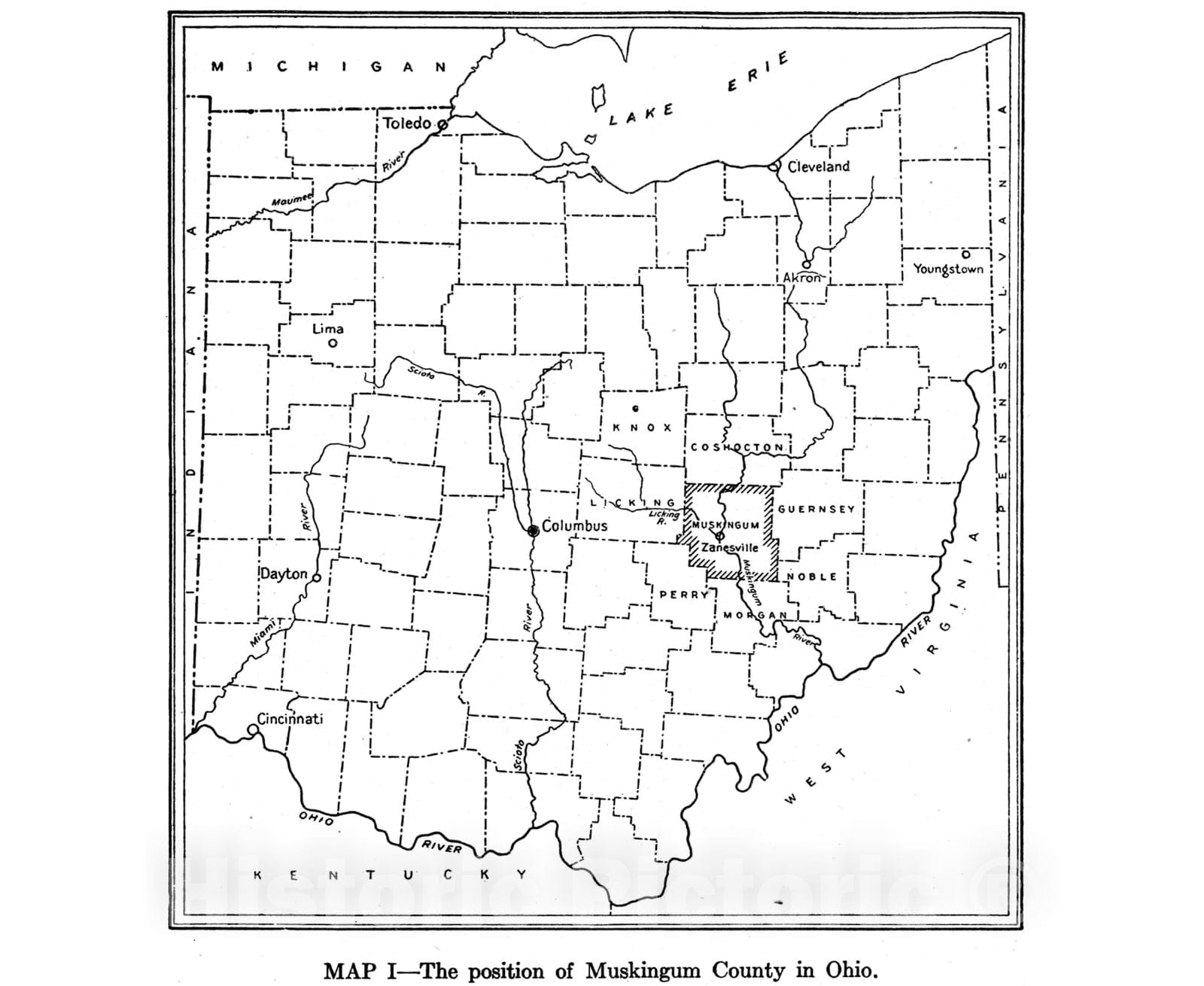 Map : Geology of Muskingum County, 1918 Cartography Wall Art :