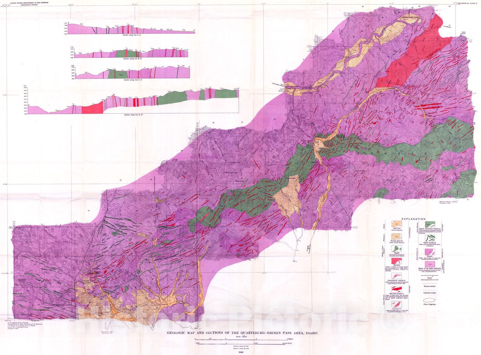 Map : Geology and ore deposits of Boise Basin, Idaho, 1947 Cartography Wall Art :