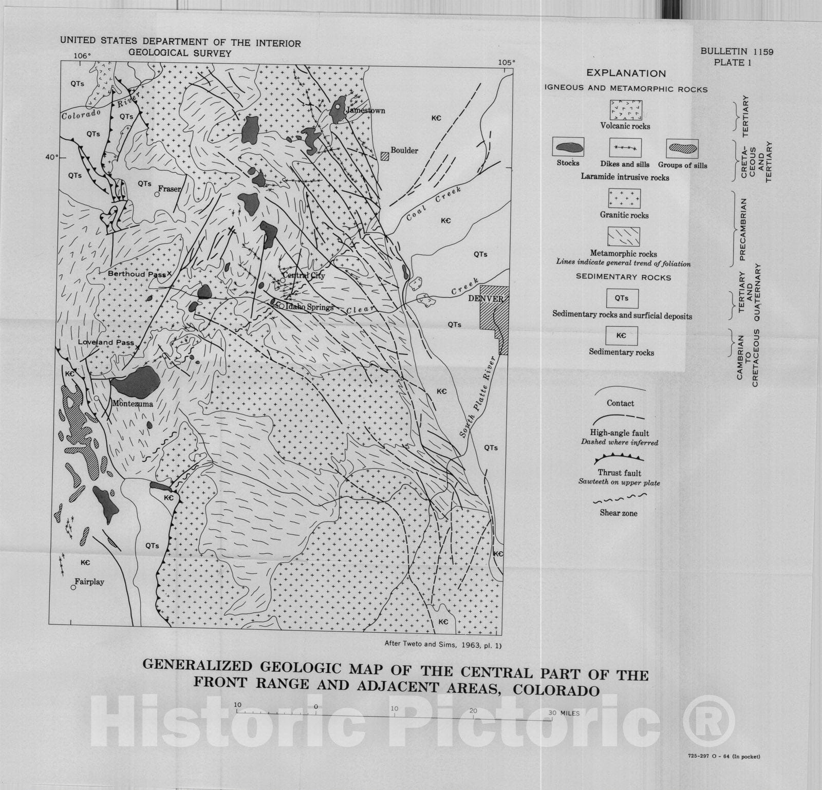 Map : Geology of uranium deposits in the Front Range, Colorado, 1964 Cartography Wall Art :