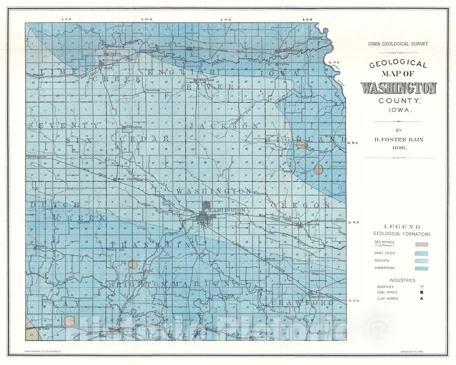 Map : Geology of Washington County [Iowa], 1896 Cartography Wall Art :