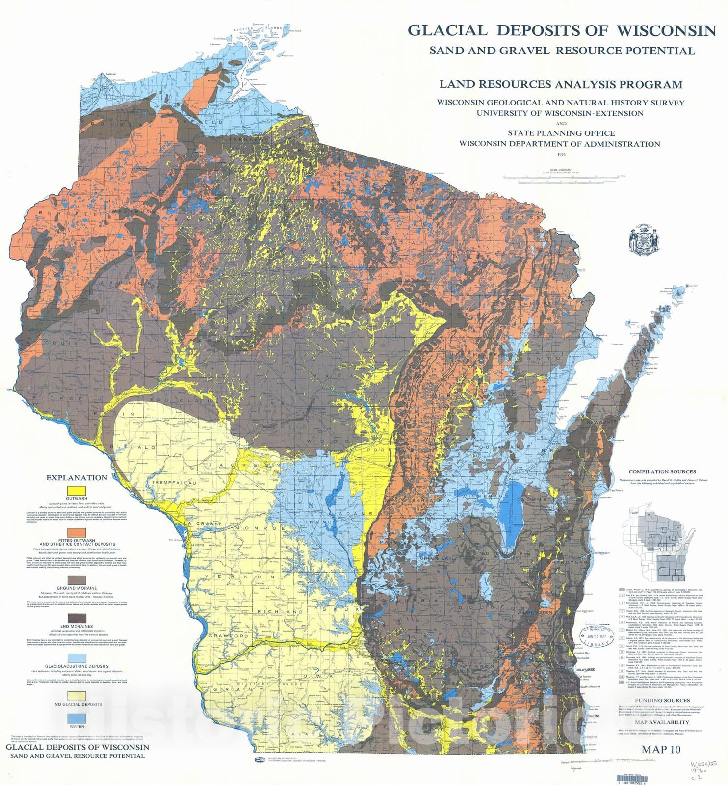 Map : Glacial Deposits of Wisconsin: Sand and Gravel Resource Potential, 1976 Cartography Wall Art :