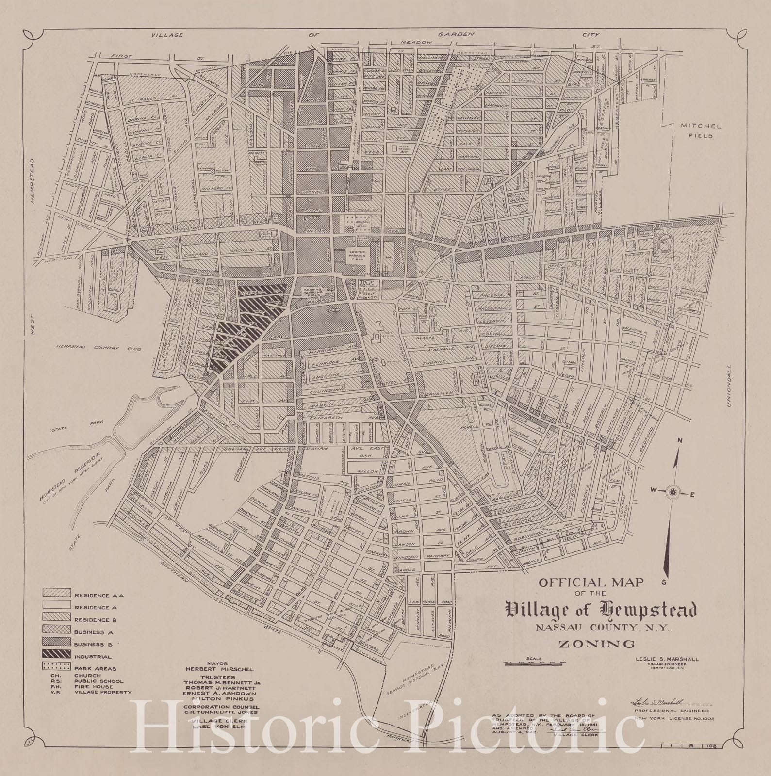 Map : Hempstead, New York 1942, Official map of the Village of Hempstead, Nassau County, N.Y., zoning , Antique Vintage Reproduction