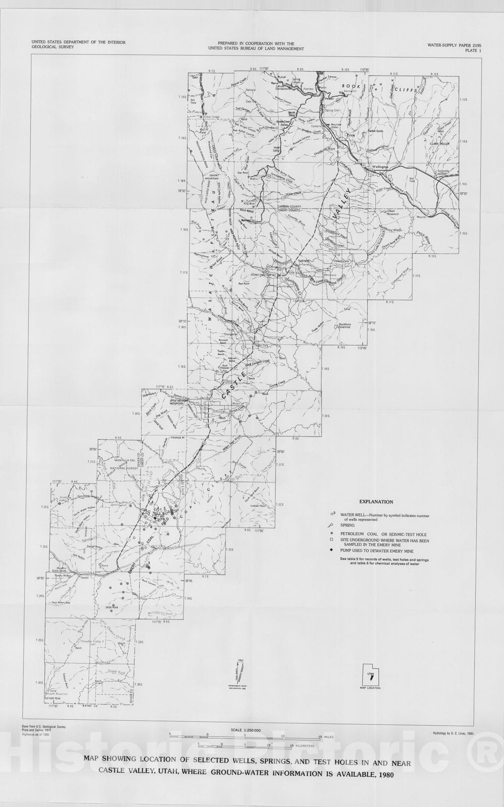 Map : Hydrology of the Ferron Sandstone aquifer and effects of proposed surface-coal mining in Castle Valley, Utah, with a section on st, 1983 Cartography Wall Art :