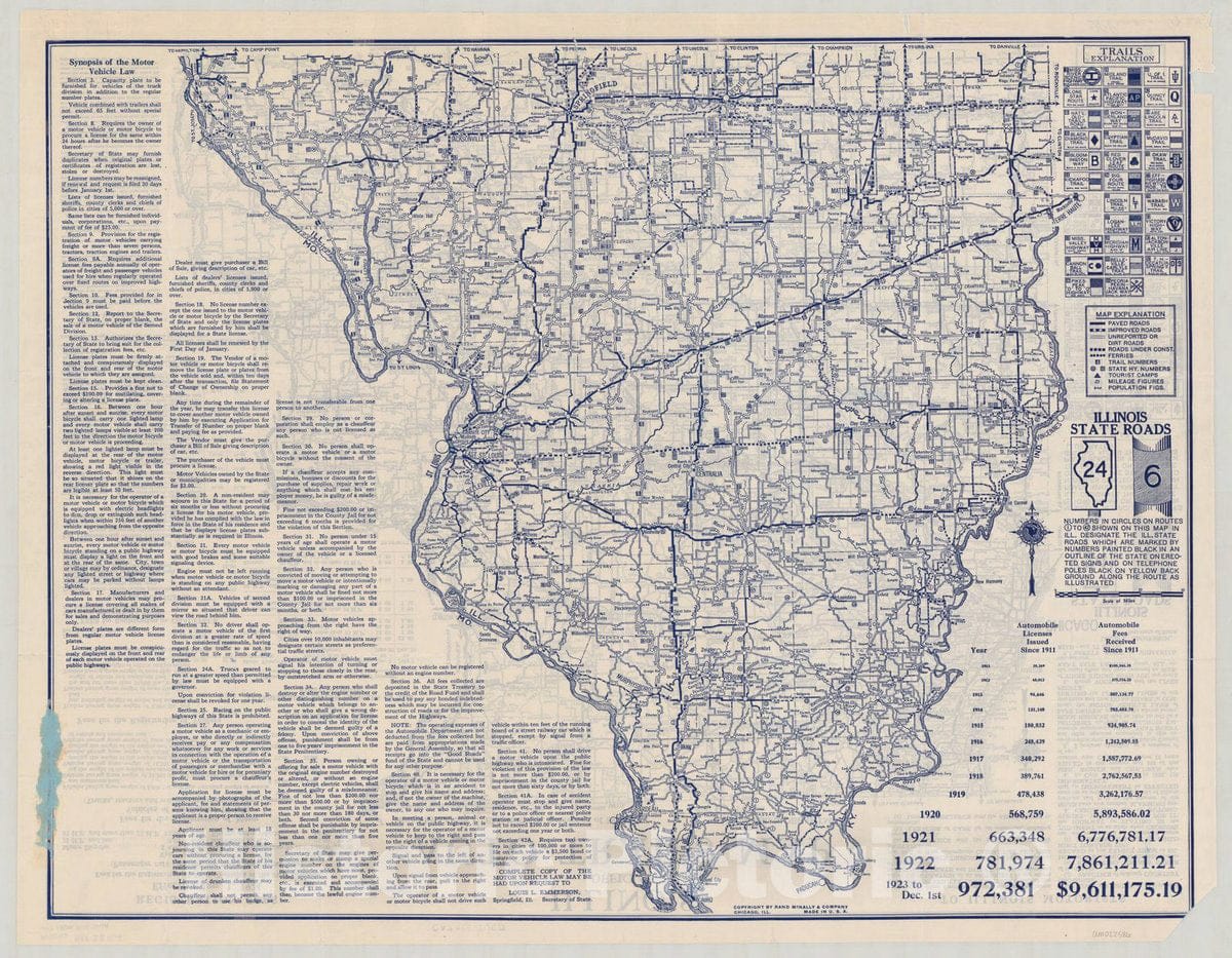 Map : Illinois 1924 1, Illinois official auto trails map , Antique Vintage Reproduction
