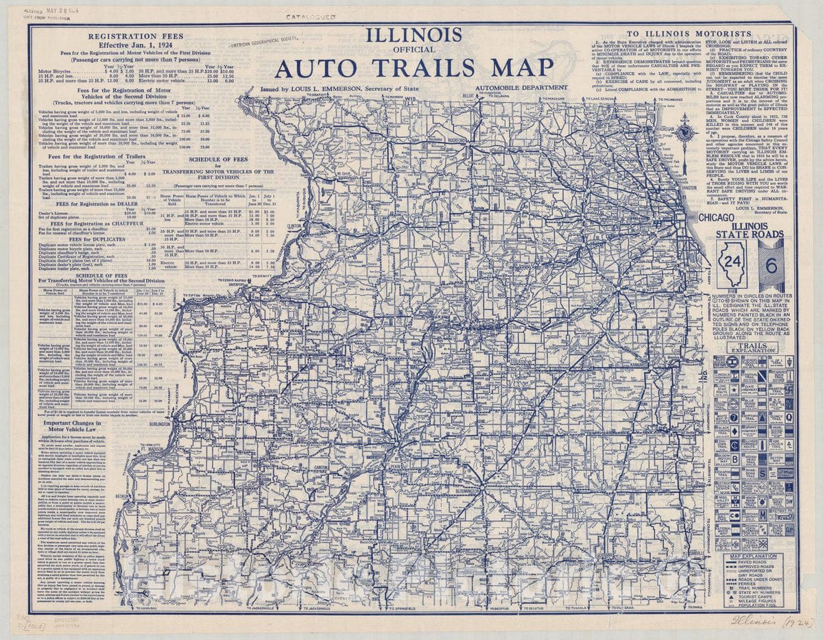 Map : Illinois 1924 2, Illinois official auto trails map , Antique Vintage Reproduction