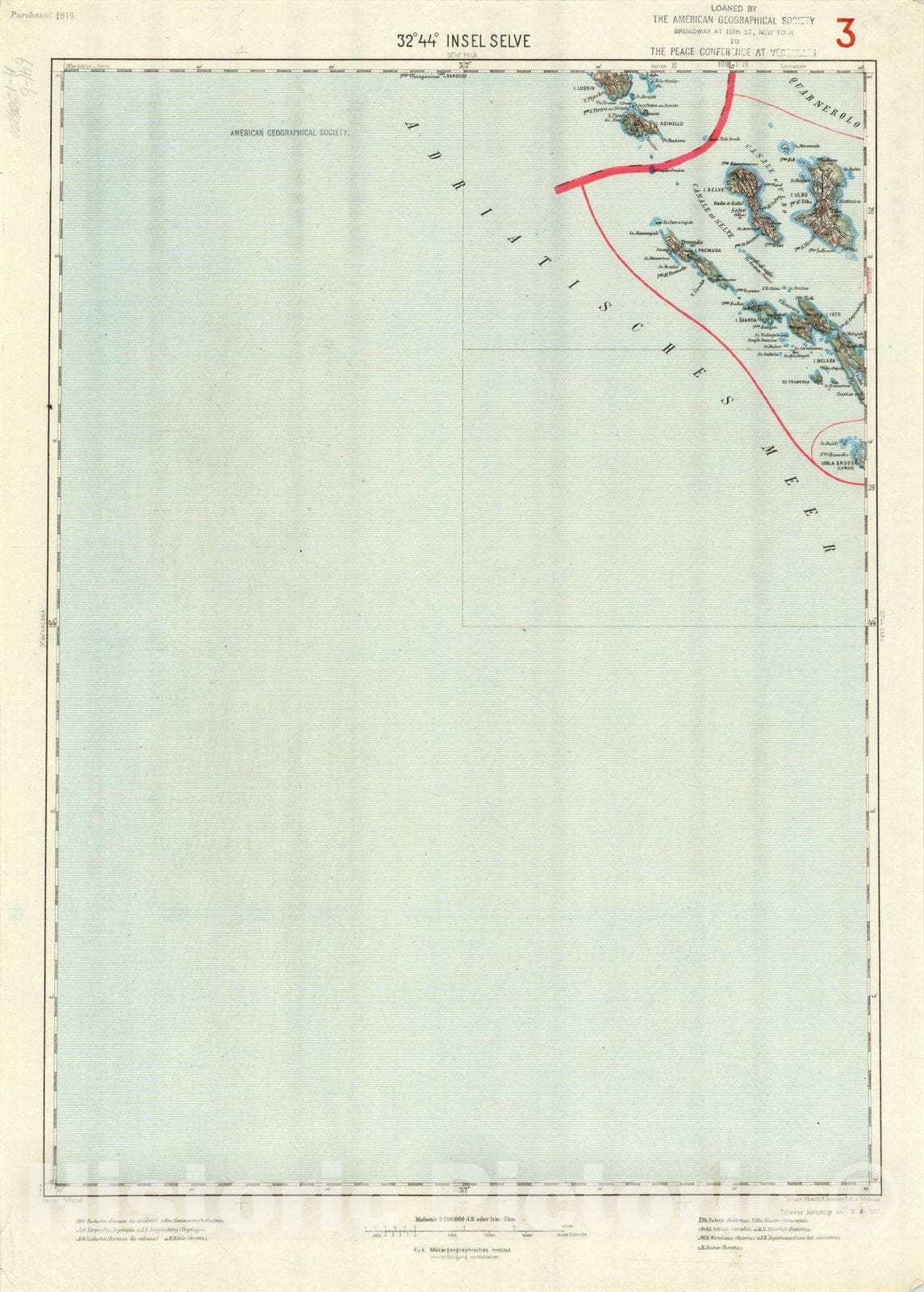 Map : Insel Selve (Silba), Croatia 1913, Generalkarte von Mitteleuropa, Antique Vintage Reproduction