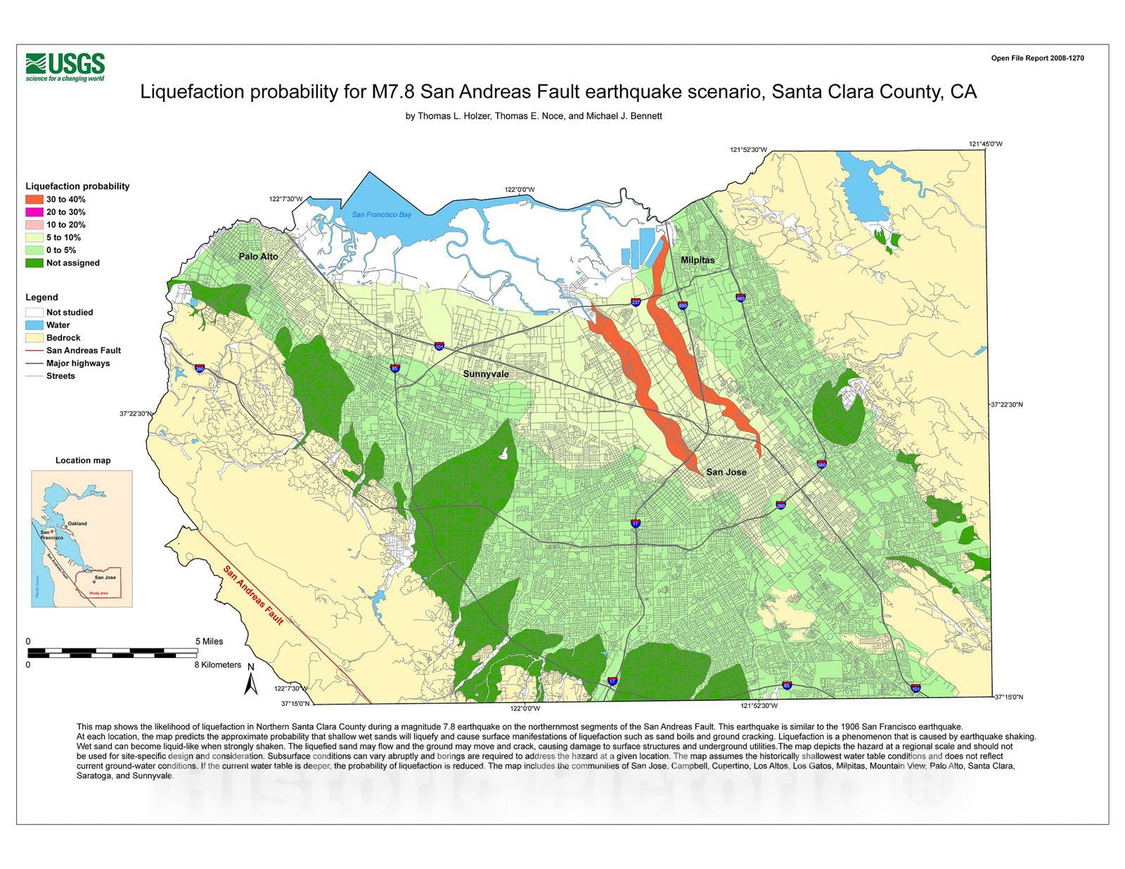Liquefaction hazard maps for three earthquake scenarios for the communities of San Jose, Campbell, Cupertino, Los Altos, Los Gatos, Milpitas, Mountain View, Palo Alto, Santa Clara, Saratoga, and Sunnyvale, northern Santa Clara County, California