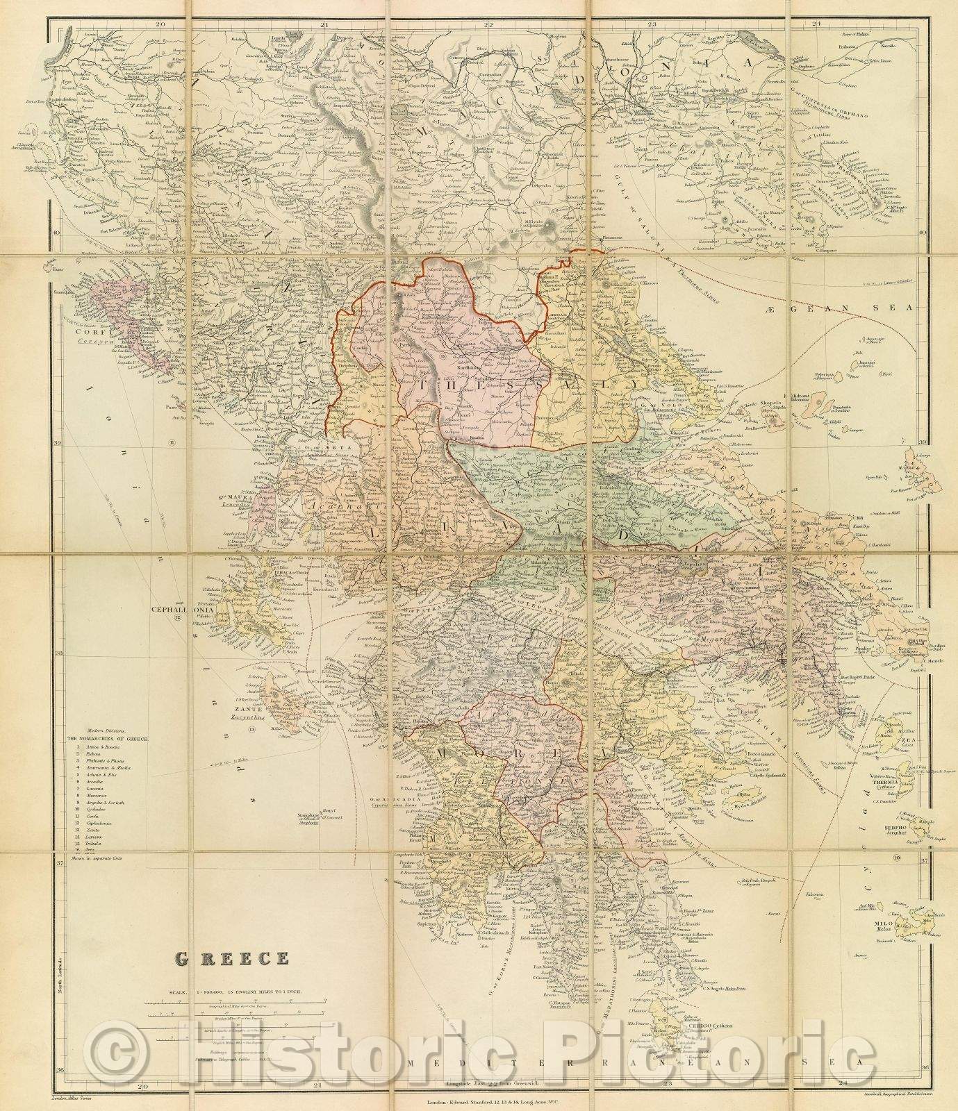 Historic Map : London Atlas Map of Greece and the Ionian Islands, 1910 , Vintage Wall Art