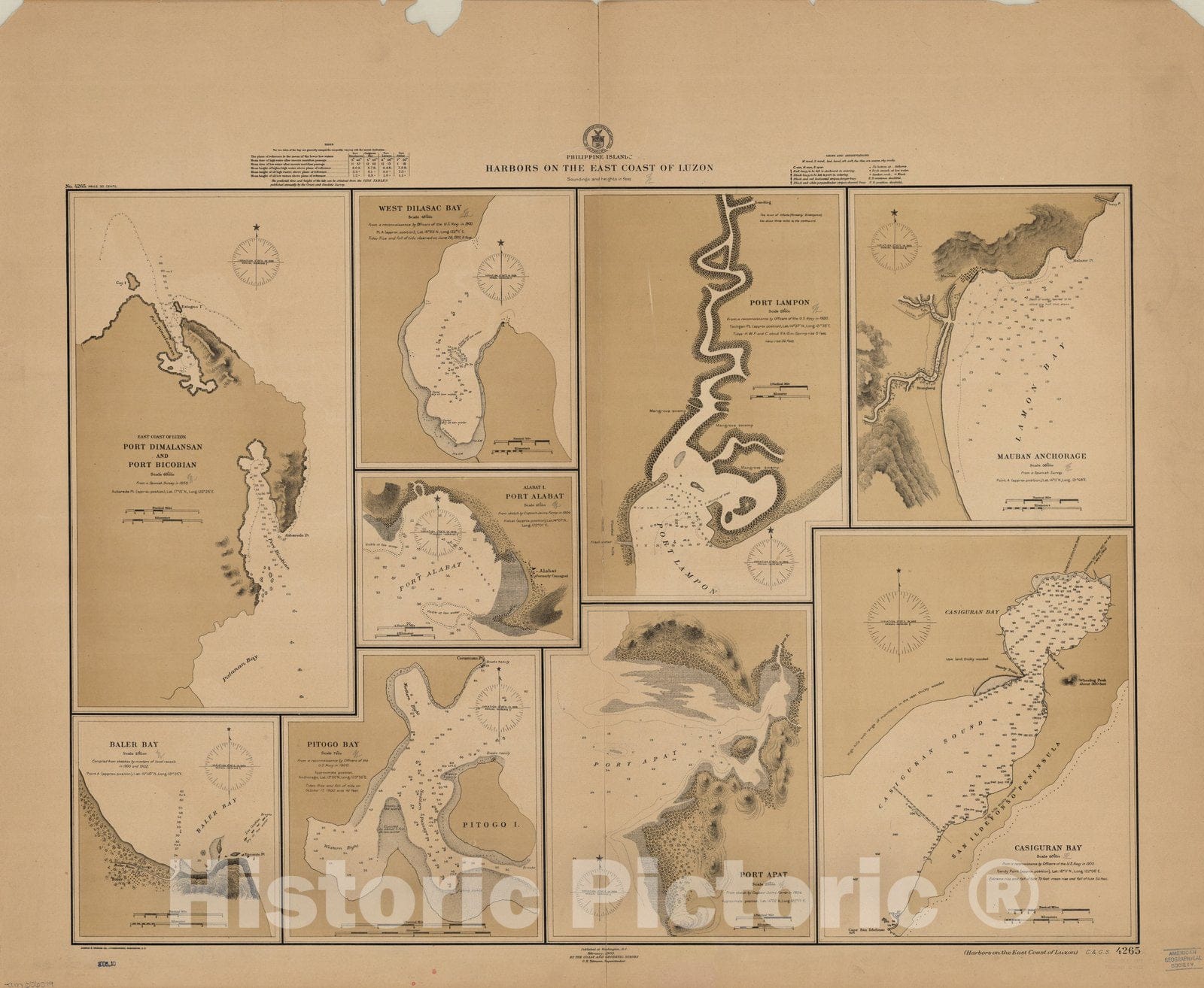 • .Map : Luzon, Philippines 1905, Philippine Islands, harbors on the east coast of Luzon , Antique Vintage Reproduction