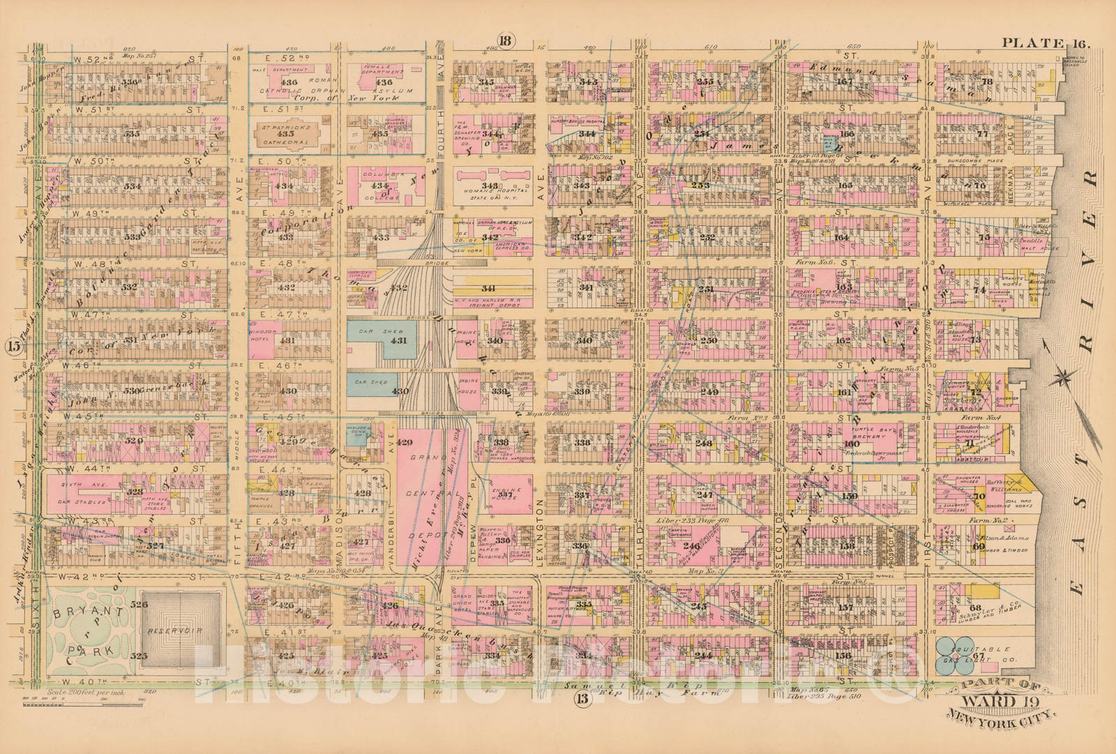 Historic Map : Manhattan & New York City 1885 Plate 016 , Robinson's Atlas City of New York , Vintage Wall Art