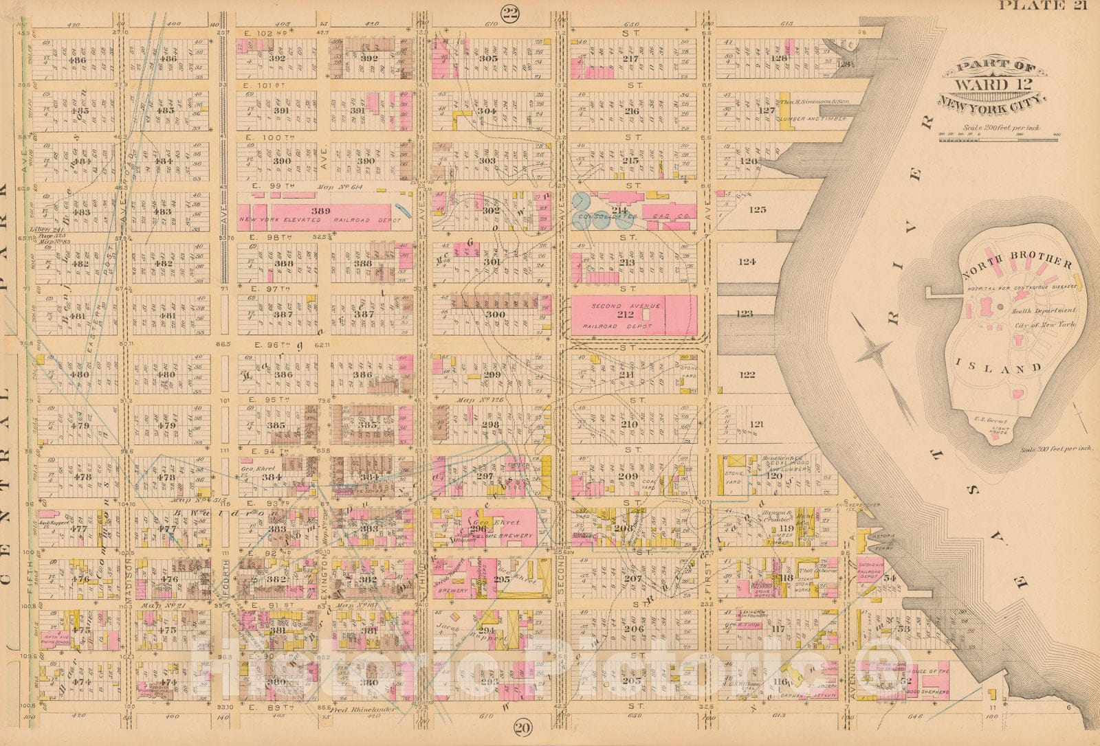 Historic Map : Manhattan & New York City 1885 Plate 021 , Robinson's Atlas City of New York , Vintage Wall Art