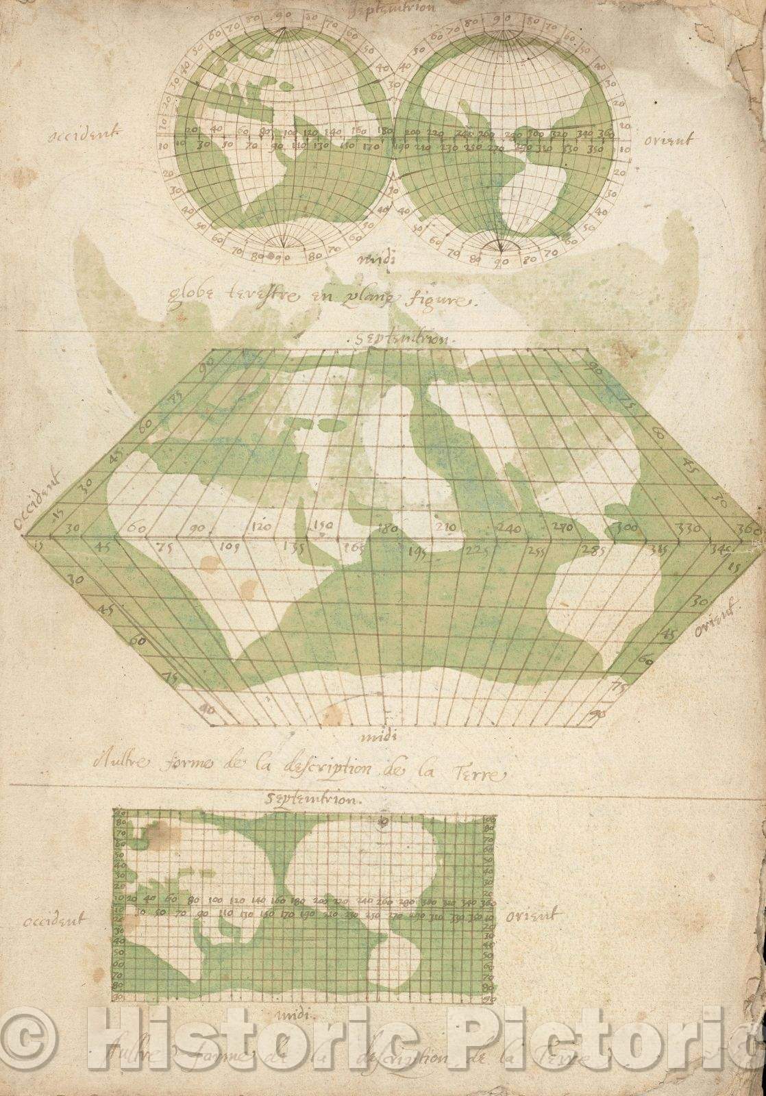 Historic Map : Manuscript Geography of the world, 1600 , Vintage Wall Art