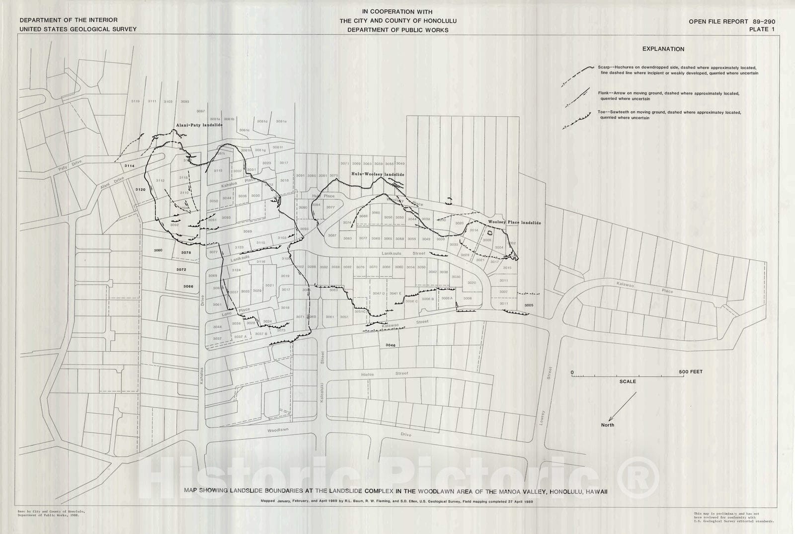 Map : Maps showing landslide features and related ground deformation in the Woodlawn area of the Manoa Valley, city and county of Honolulu, Hawaii, 1989 Cartography Wall Art :