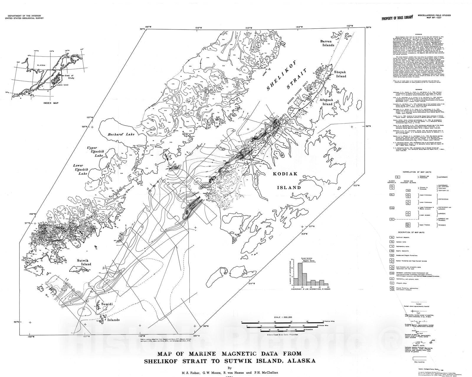 Map : Map of marine magnetic data from Shelikof Strait to Sutwik Island, Alaska, 1981 Cartography Wall Art :