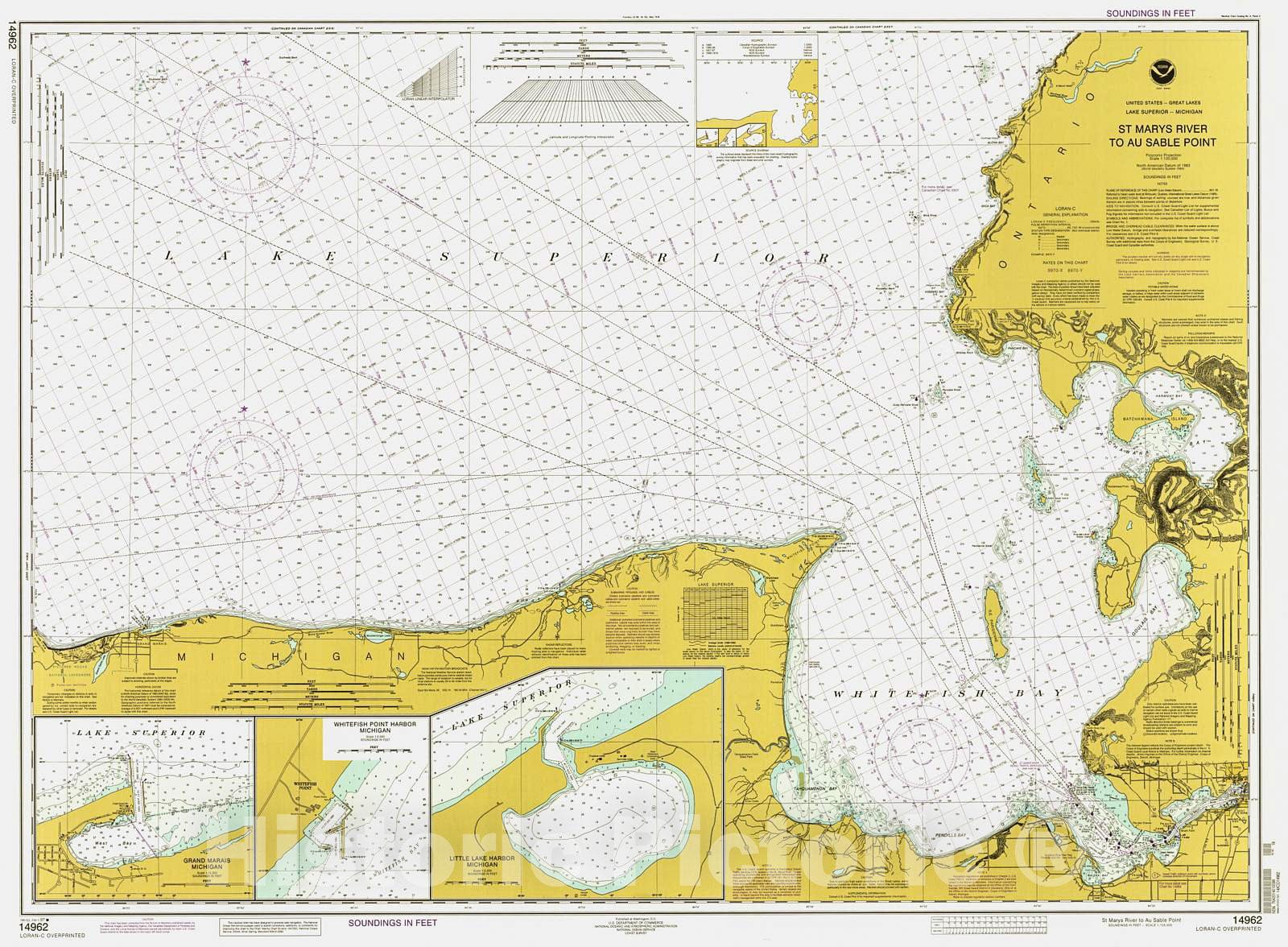 Historic Nautical Map - St Marys River To Au Sable Point, 1997 NOAA Chart - Michigan (MI) - Vintage Wall Art