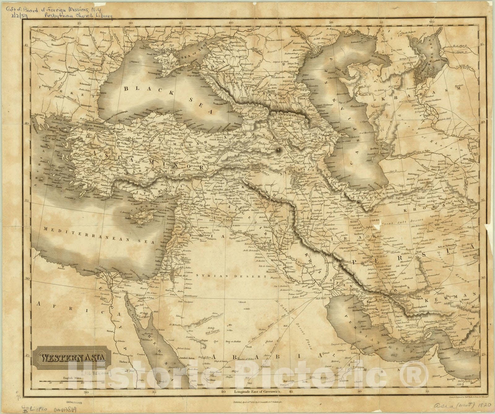 Map : Middle East 1820, Western Asia , Antique Vintage Reproduction