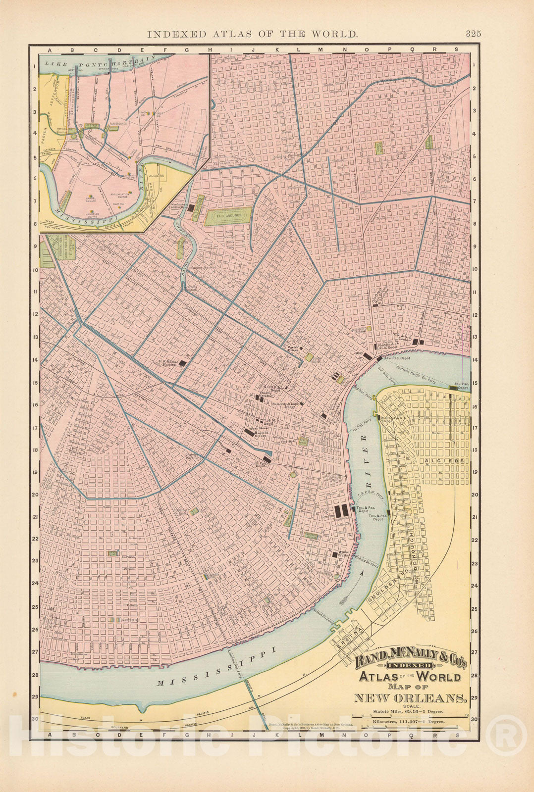 Historic Map : New Orleans 1891 , Rand McNally's Atlas World , Vintage Wall Art
