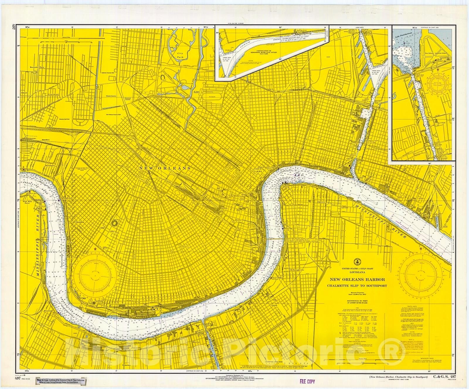 Historic Nautical Map - New Orleans Harbor, Chalmette Ship To Southport, 1966 NOAA Chart - Louisiana (LA) - Vintage Wall Art