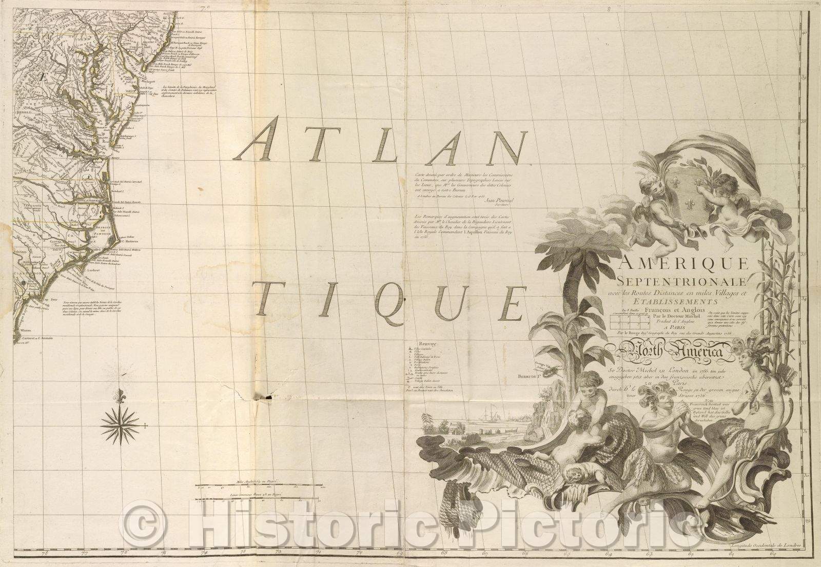 Historic Map : North America so Doctor Michel zu London im 1755: ten jahr ausgegeben jetzt aber in das franzosische ubersetzet zu Paris. durch H. le Rouge, 1756 , Vintage Wall Art , v3