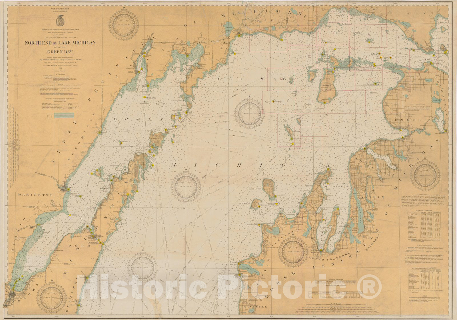 Historic Nautical Map - North End Of Lake Michigan Including Green Bay, MI, WI, 1924 NOAA Chart - Vintage Wall Art