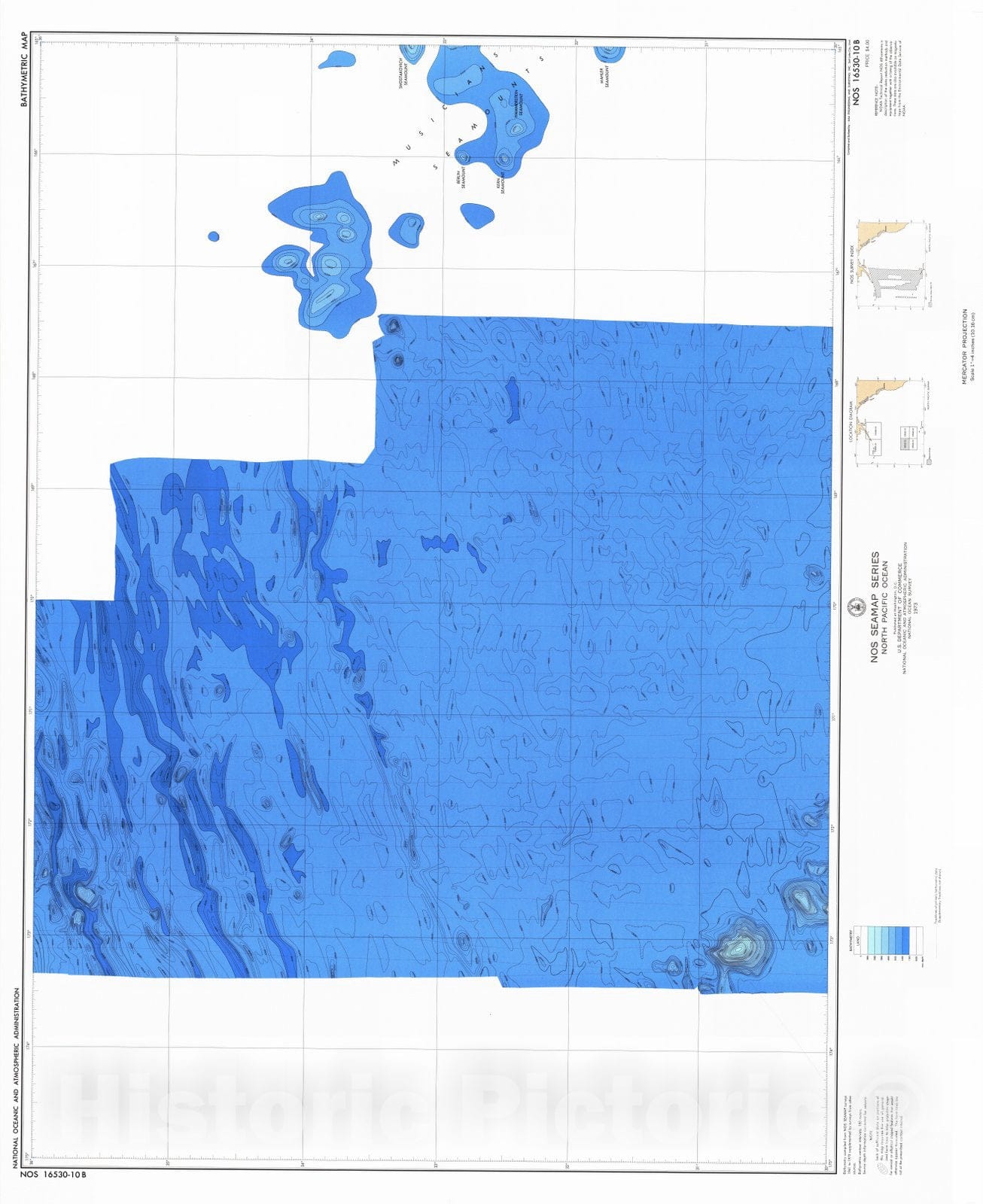 Historic Nautical Map - North Pacific Ocean, USA, 1973 NOAA Bathymetric Historic Nautical Map - Vintage Wall Art