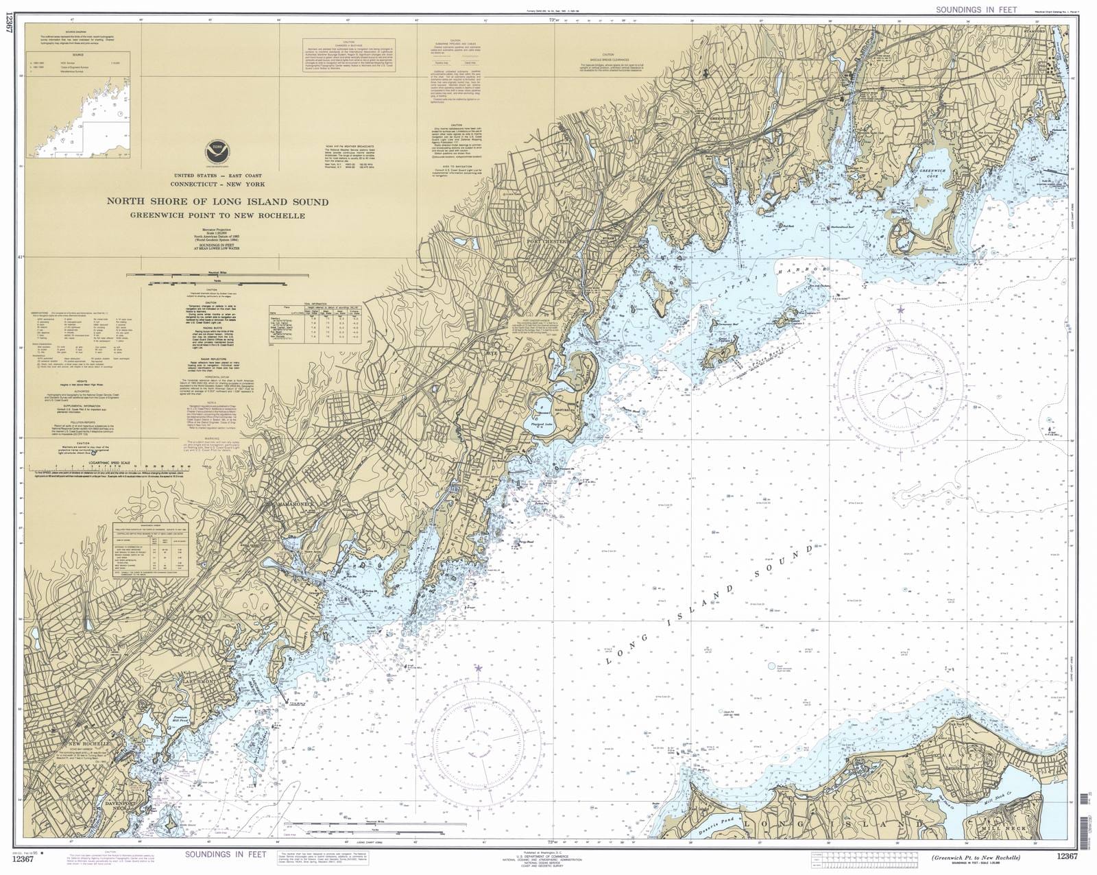 Historical North Shore Of Long Island Sound - Greenwich Pt To New Rochelle | 30in x 24in 1974 Nautical Chart | NY, CT Vintage Map | Fine Art Reproduction Print