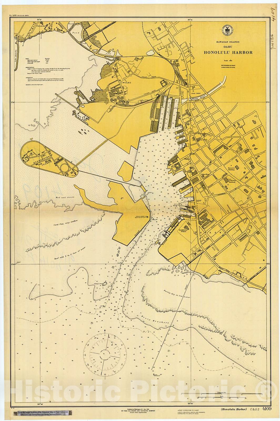 Historic Nautical Map - Oahu : Honolulu Harbor, 1916 NOAA Chart - Hawaii (HI) - Vintage Wall Art