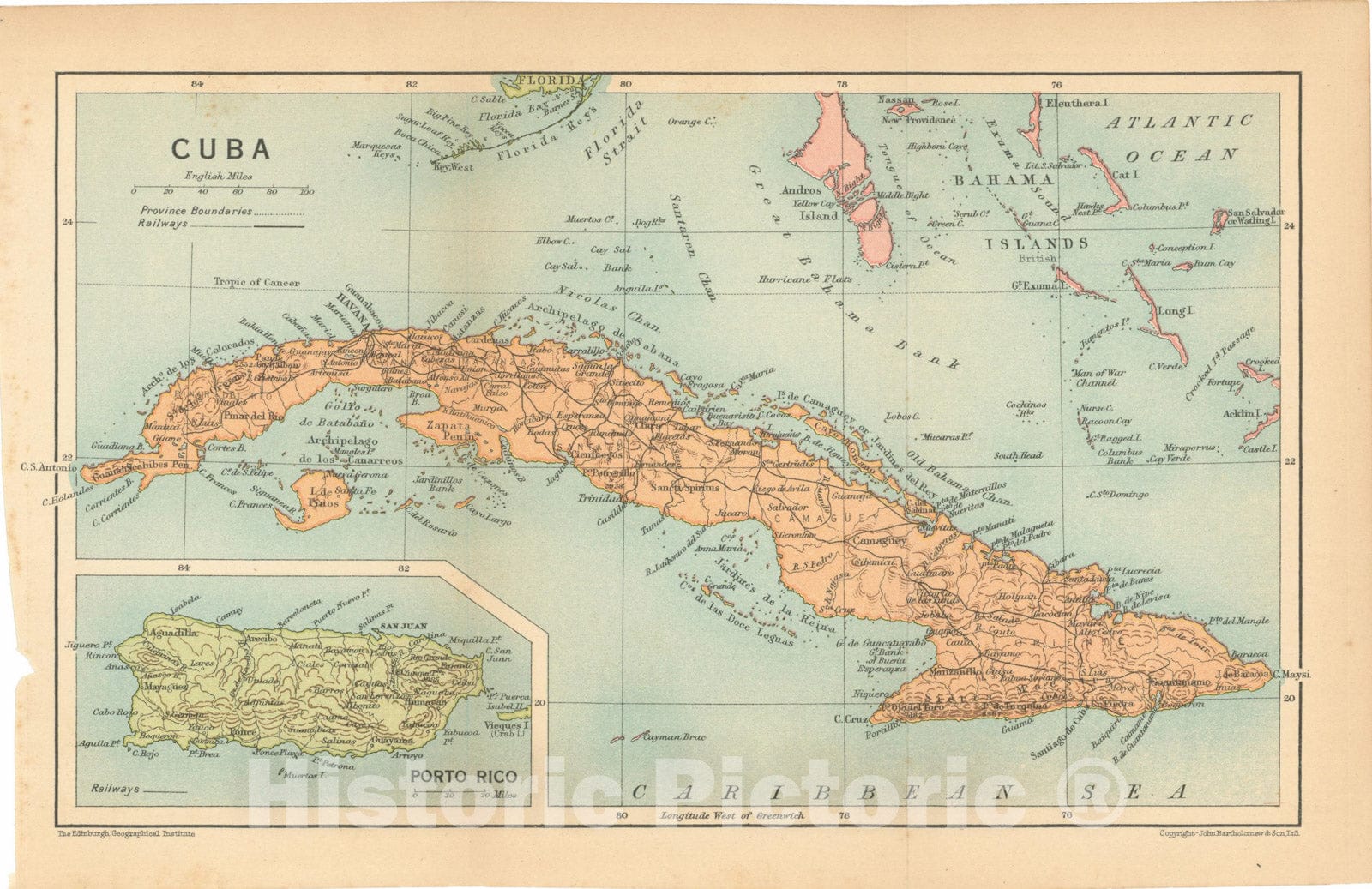 Historic Map : Pocket Guide to the West Indies, Cuba & Puerto Rico 1927 , Vintage Wall Art