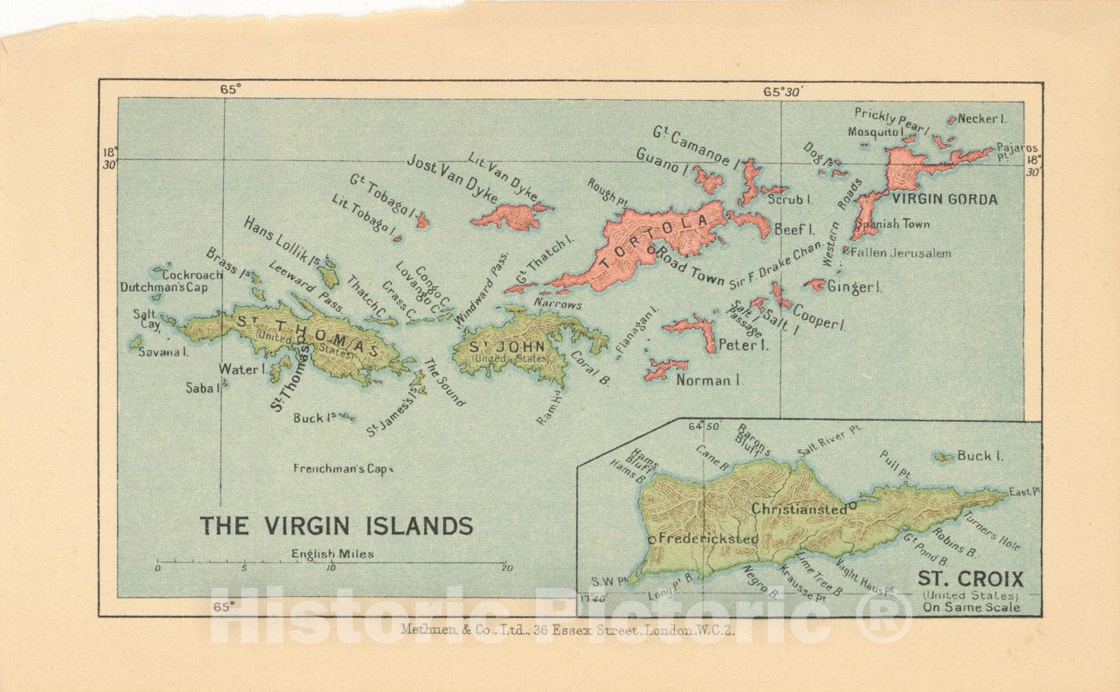Historic Map : Pocket Guide to the West Indies, Virgin Islands 1939 , Vintage Wall Art