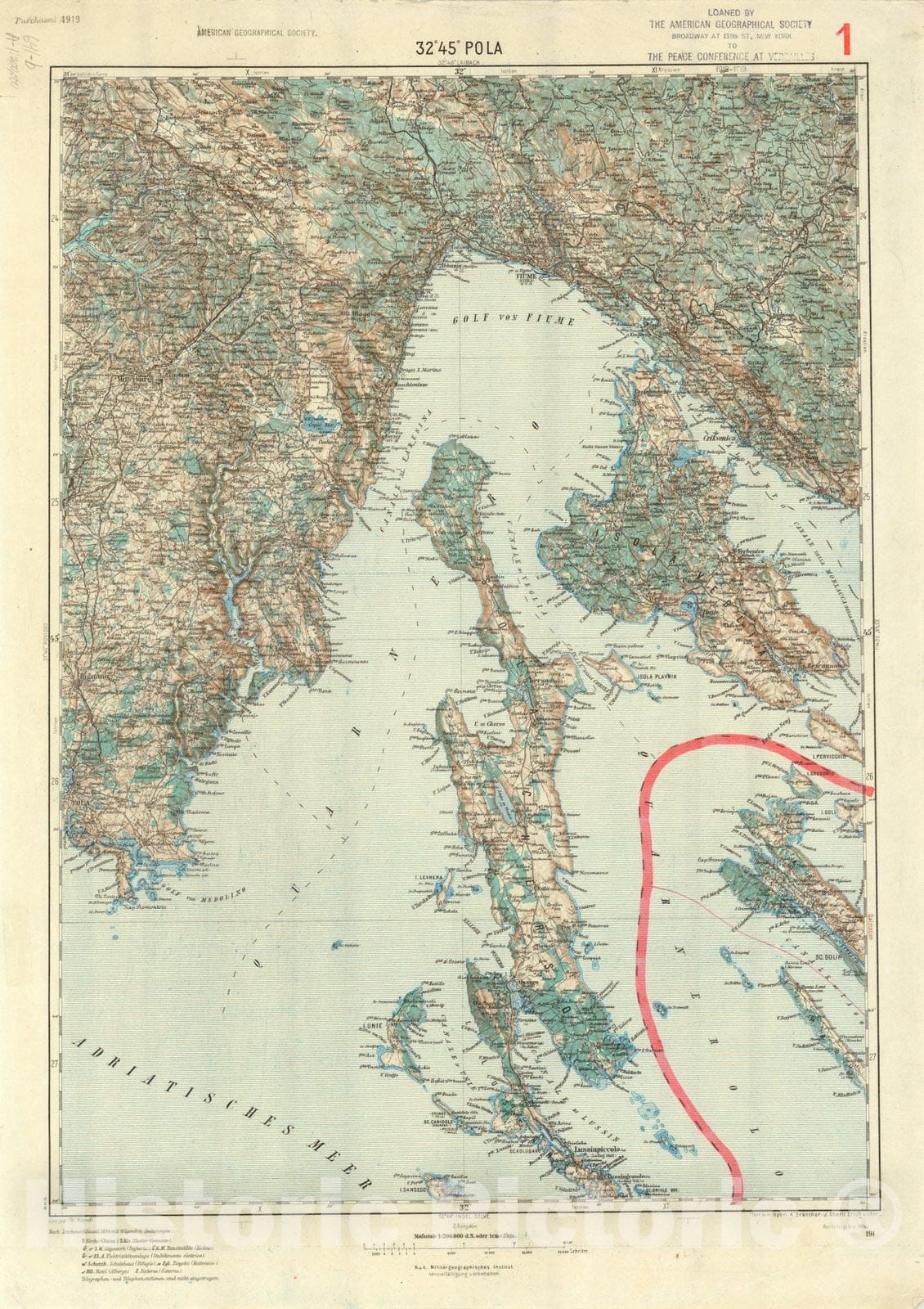 Map : Pola (Pula), Croatia 1914 2, Generalkarte von Mitteleuropa, Antique Vintage Reproduction
