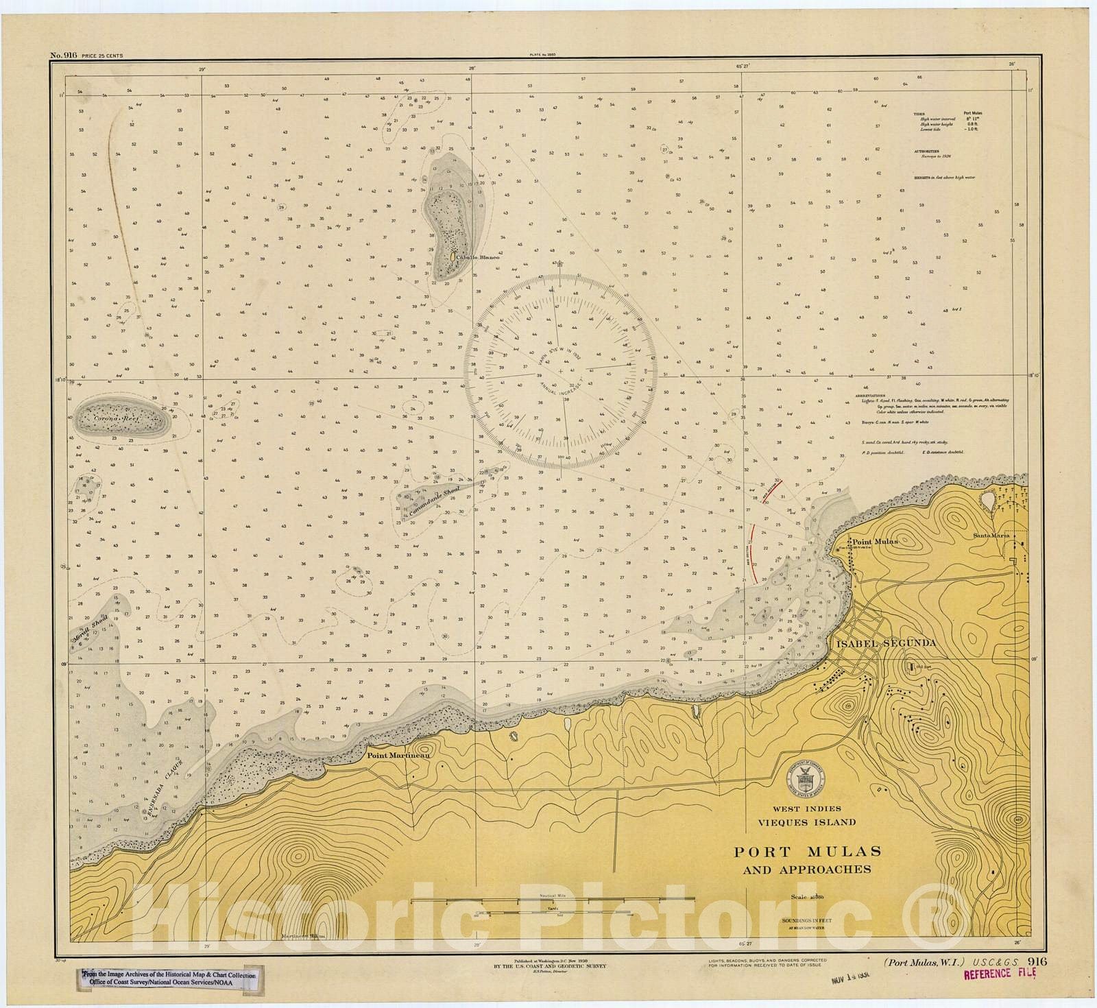 Historic Nautical Map - Port Mulas, W. I, 1930 NOAA Chart - Puerto Rico (PR) - Vintage Wall Art