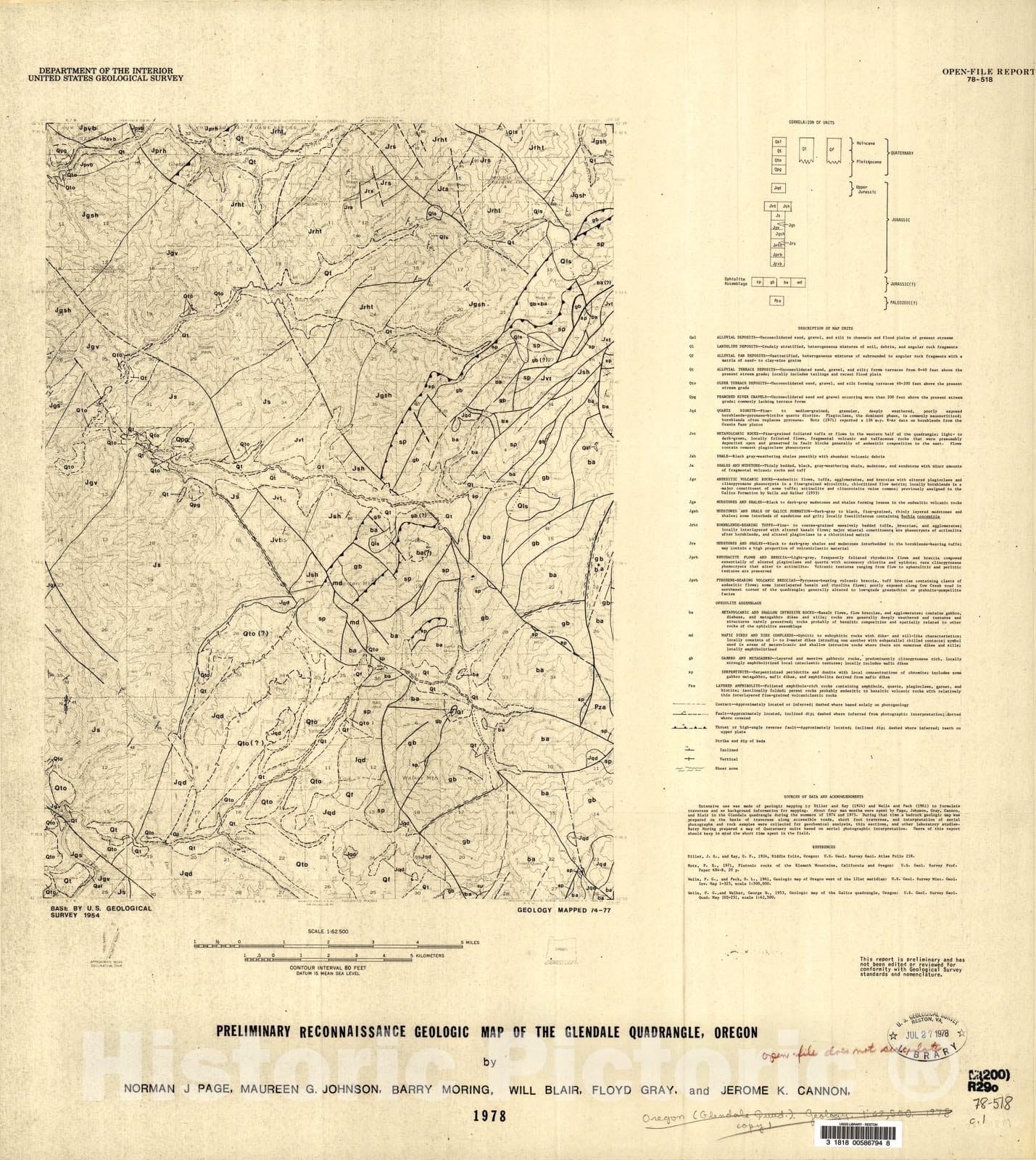 Map : Preliminary reconnaissance geologic map of the Glendale quadrangle, Oregon, 1978 Cartography Wall Art :