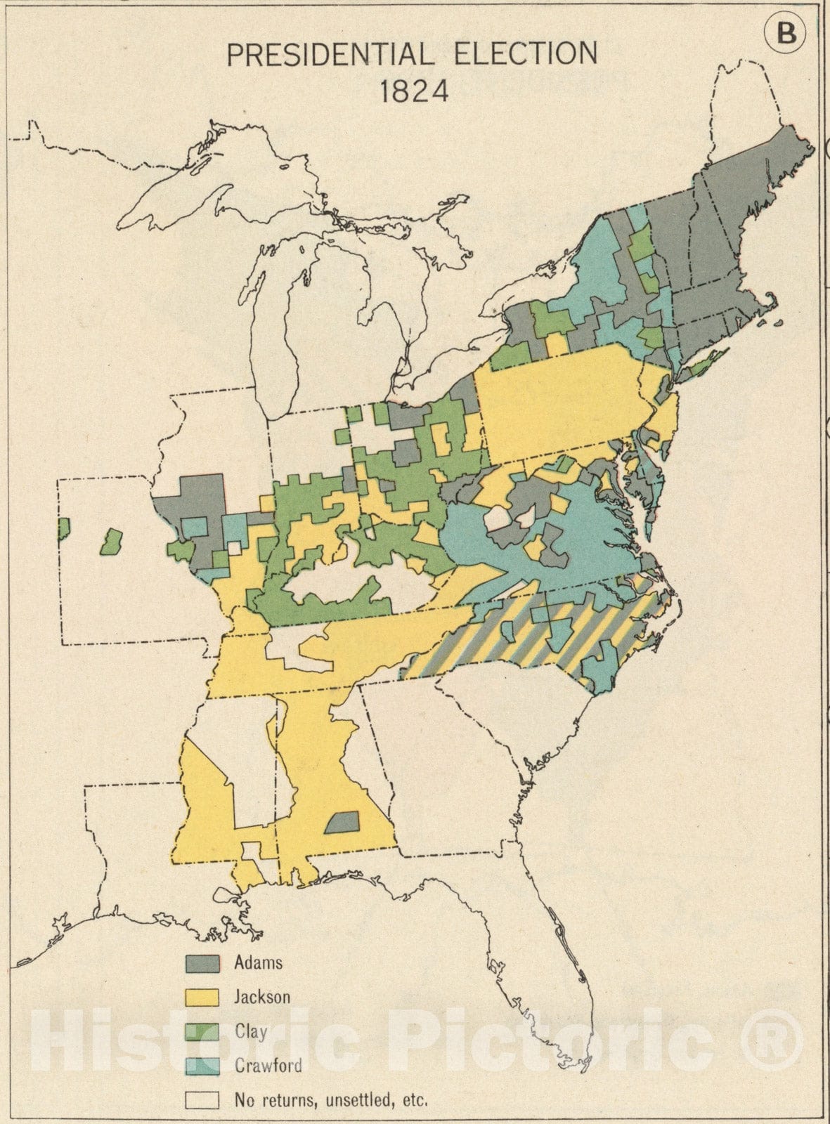 Historical Map, Presidential Election 1824, Vintage Wall Art