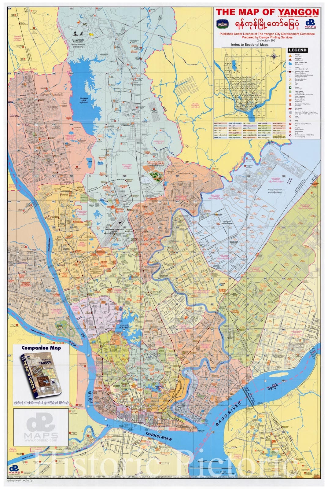 Map : Rangoon, Burma 2001, The map of Yangon, Ran kun mruito mre pum , Antique Vintage Reproduction