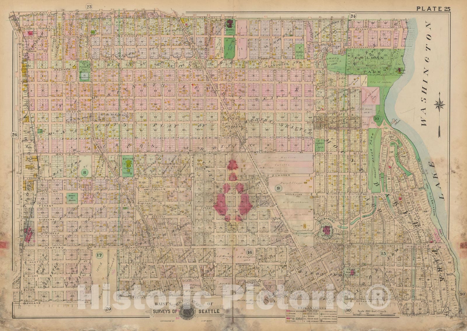 Historic Map : Real Estate Atlas of Surveys of Seattle, Seattle 1912 Plate 025 , Vintage Wall Art
