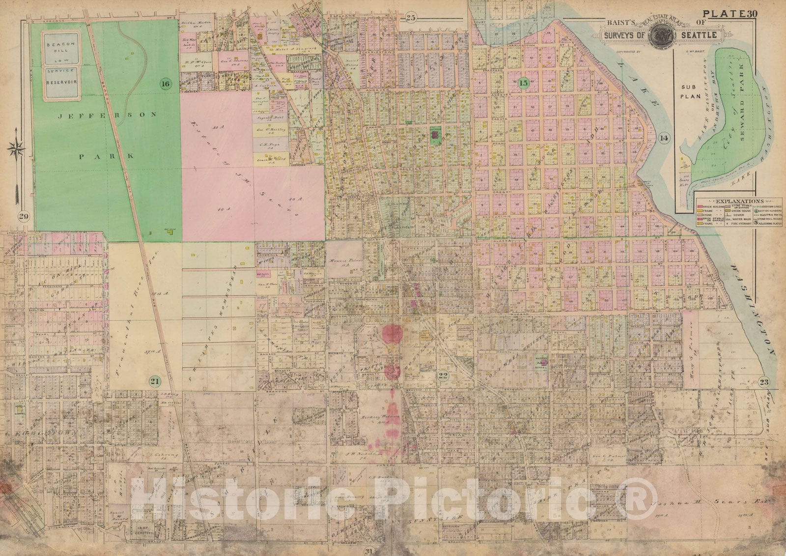 Historic Map : Real Estate Atlas of Surveys of Seattle, Seattle 1912 Plate 030 , Vintage Wall Art