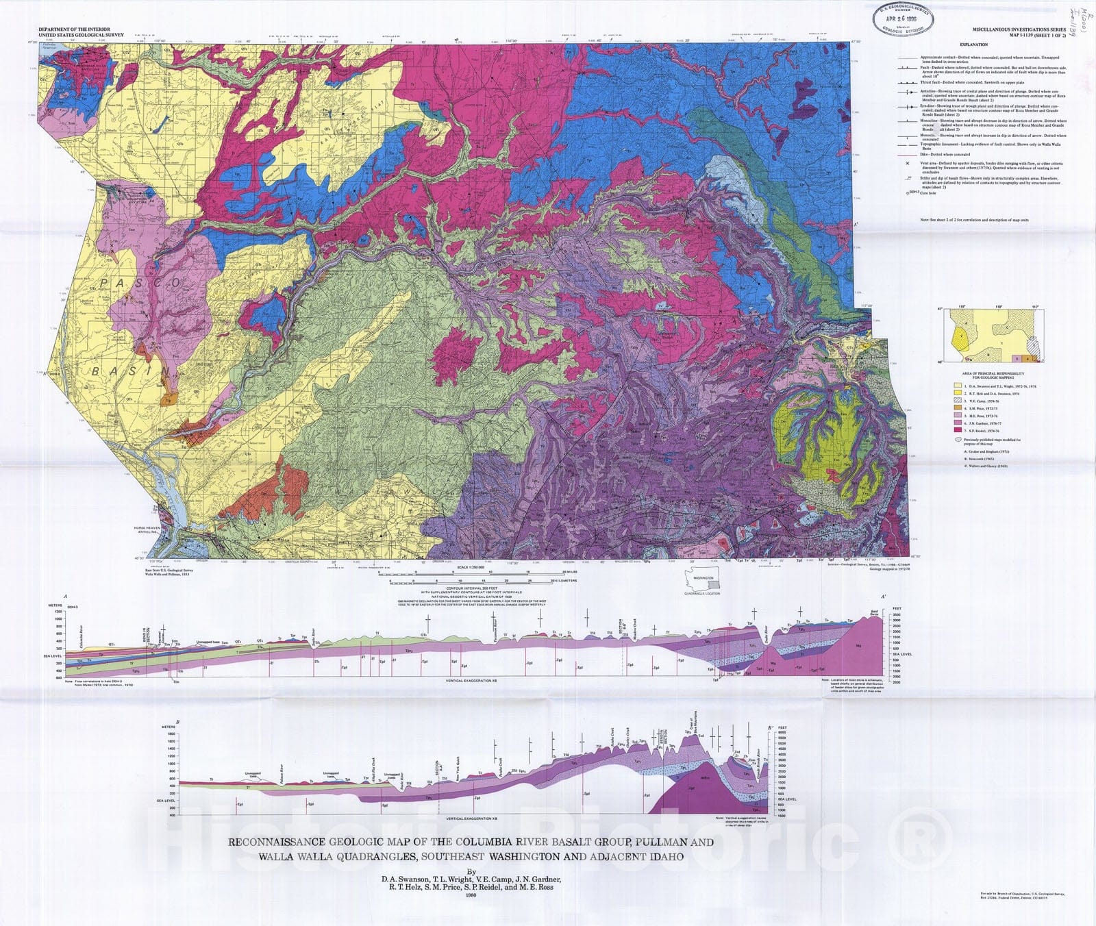 Map : Reconnaissance geologic map of the Columbia River Basalt Group, Pullman and Walla Walla quadrangles, southeast Washington and adjacent Idaho, 1980 Cartography Wall Art :